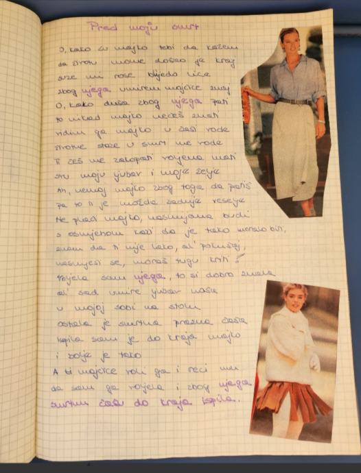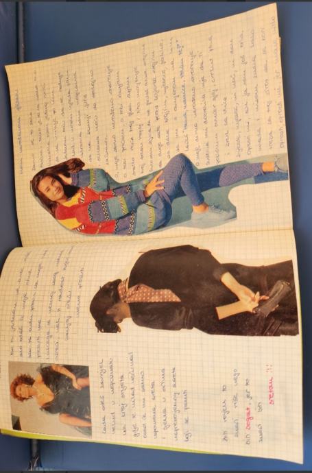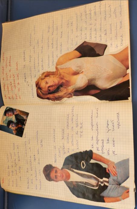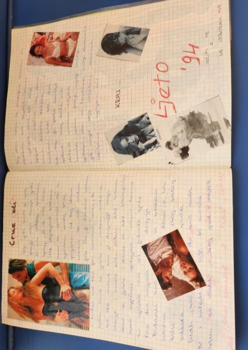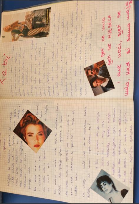 Velika bilježnica formata A3 cijela ispisana nesretnim ljubavnim porukama i pjesmama sa isječcima iz časopisa sve negdje iz osamdesetih godina.