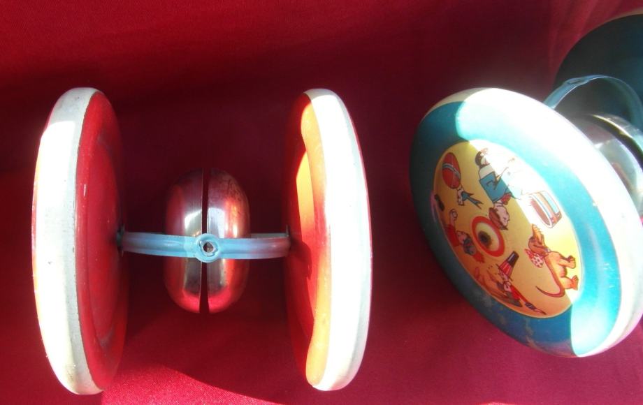 Igračka koja se koristila 60-ih godina i koja se montirala na neki štap kojeg su onda klinci gurali. Cijena je a oba dvije igračke zajedno.