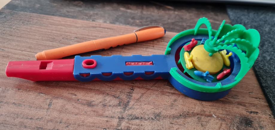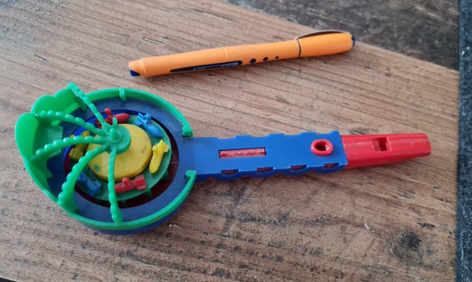 Stara dječja igračka, puhaljka, starost oko 60 godina, prilikom puhanja, okreće se prednji dio, fotografije...