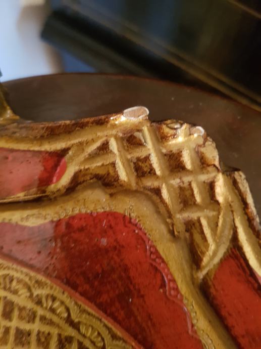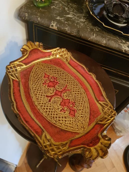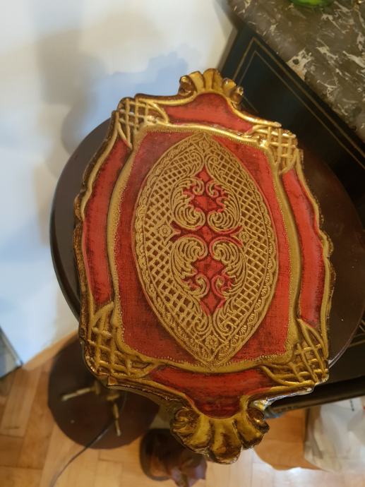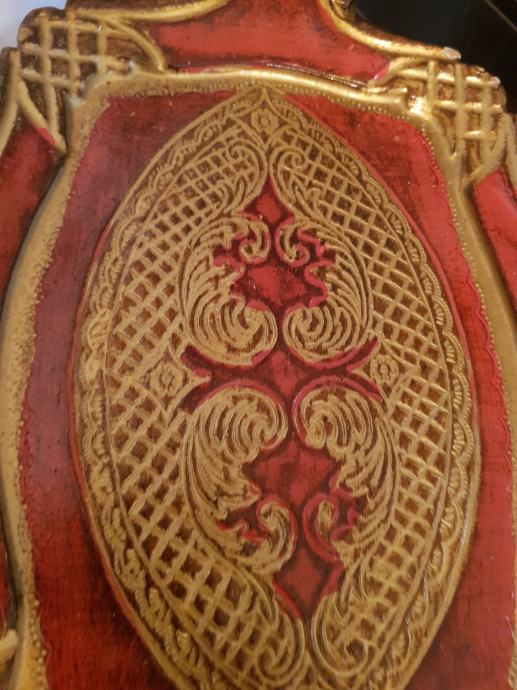 28,5 x 18.5 cm, jako stara, na vrhu je malo otišla pozlata ali se da prefarbati :))