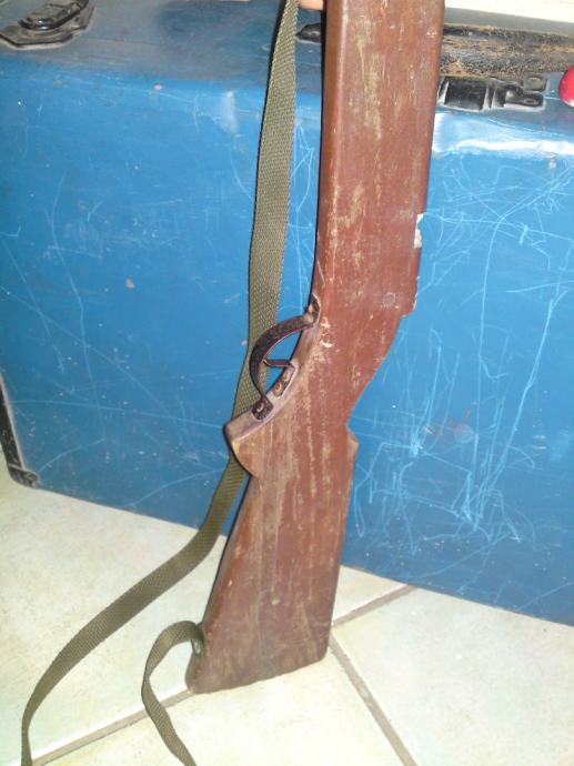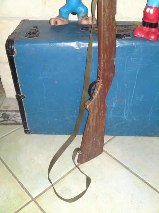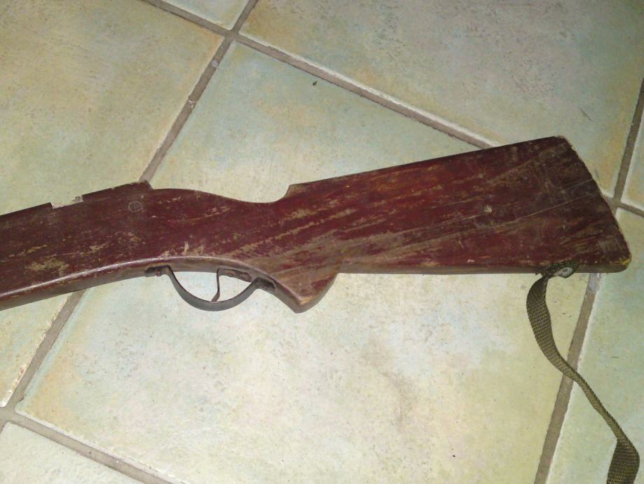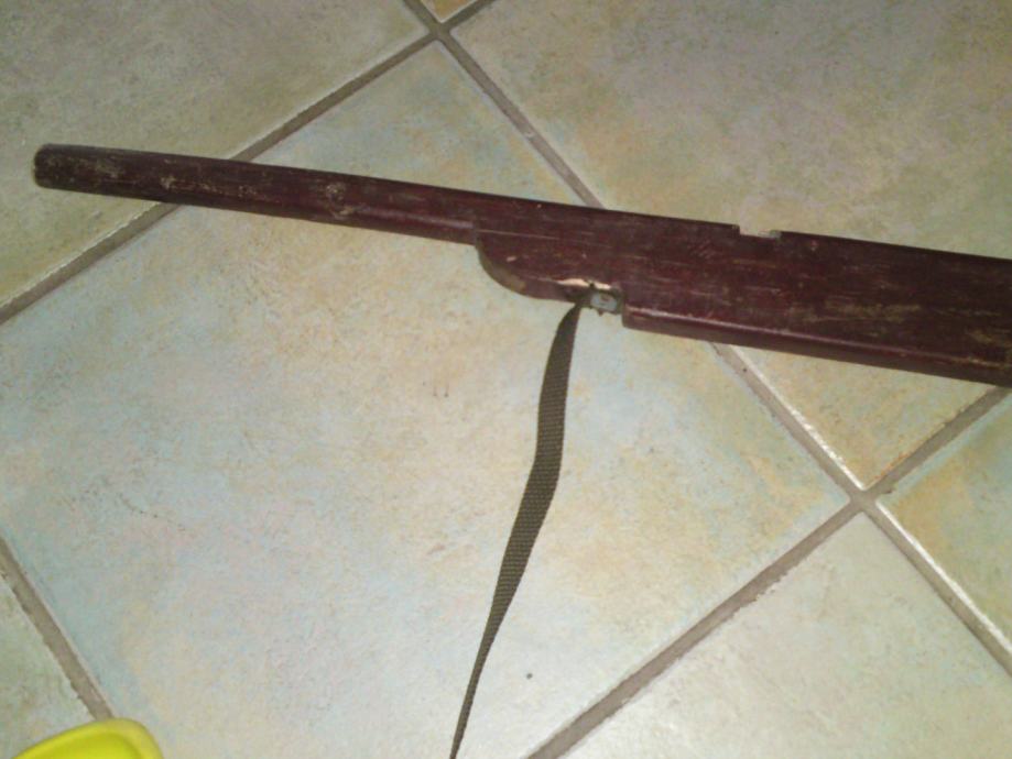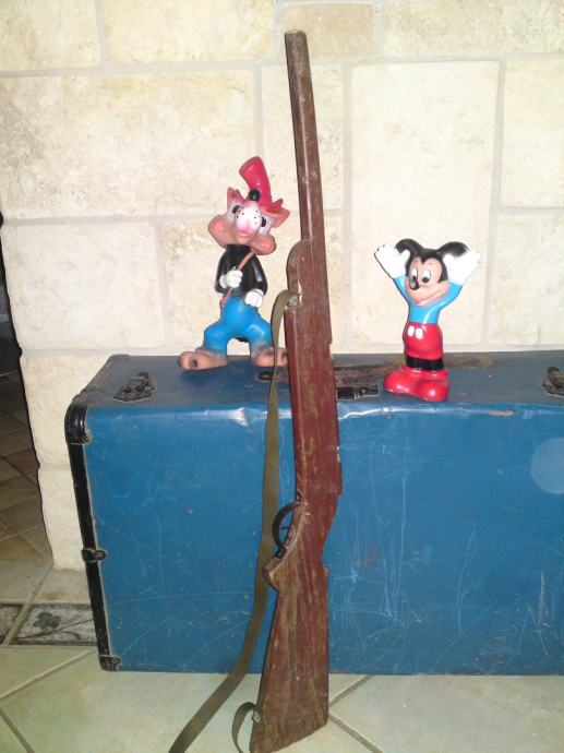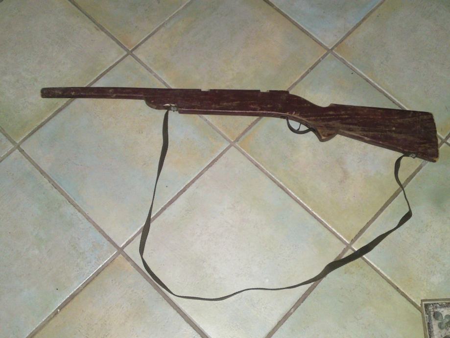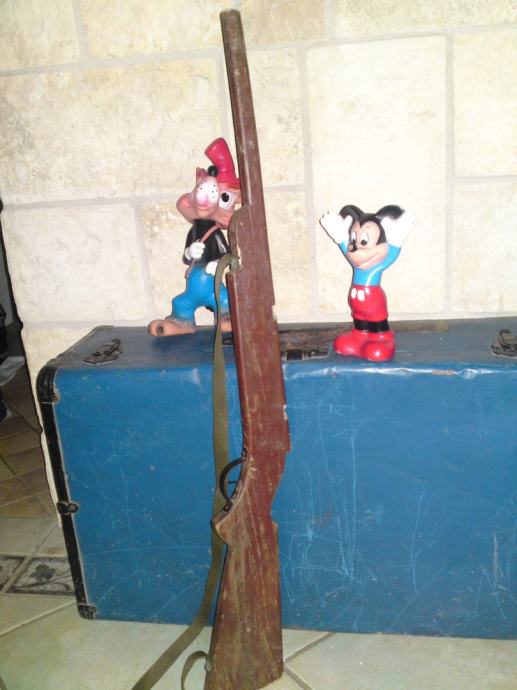 Stara igračka - drvena dječja puška, starost: 1930. g. ; dužina: 88,0 cm; stanje: sačuvano, solidno.