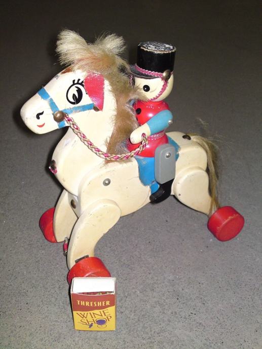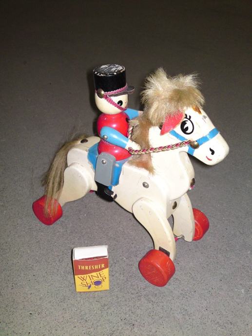 Stara drvena igračka naših djedova u odličnom stanju, konjanik + konj sa kotačima, prilika za kolekcionare!!!