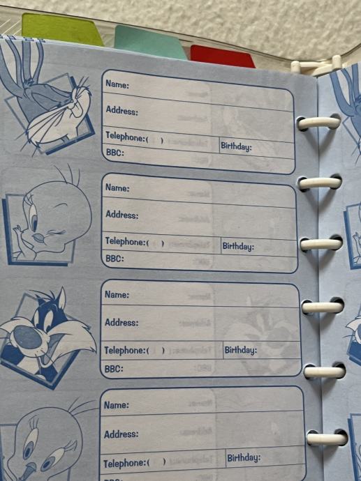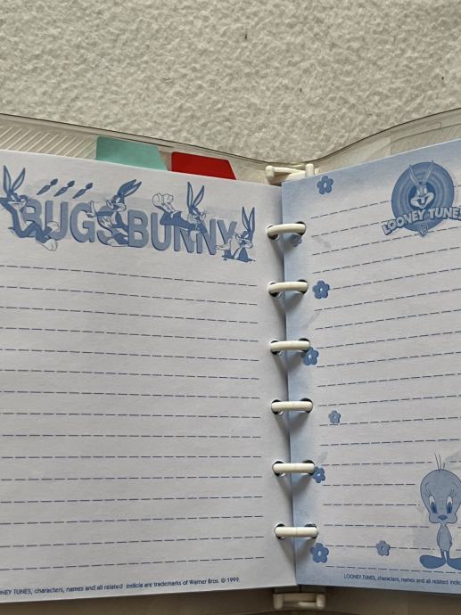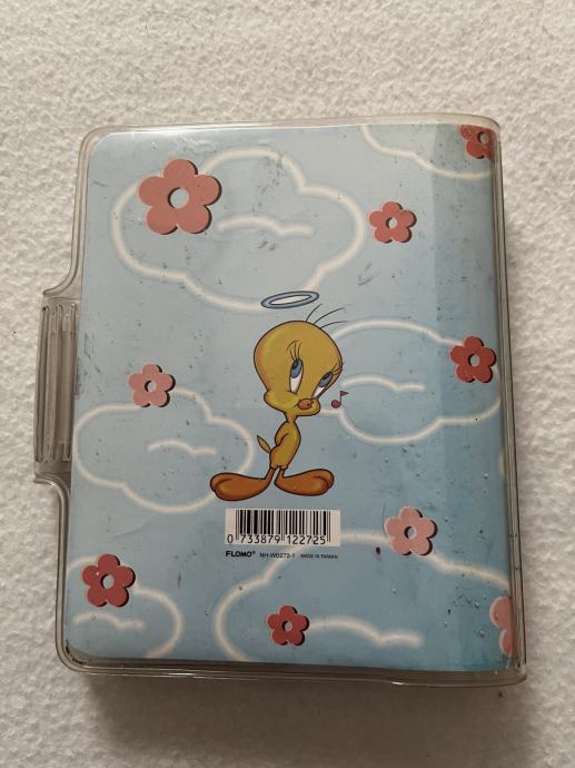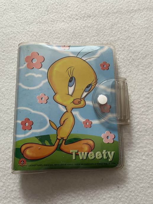 Prodajem originalni vintage mini planer/organizator s motivom Tweetyja (Looney Tunes) iz 1999. godine. Proizvođač je poznati brend Flomo. Planer je u izvrsnom stanju, s originalnim prozirnim PVC omotom i kopčom na pritisak u koji možete staviti i kemijsku.