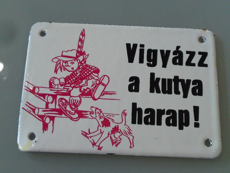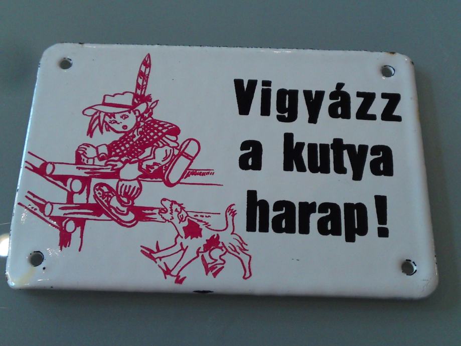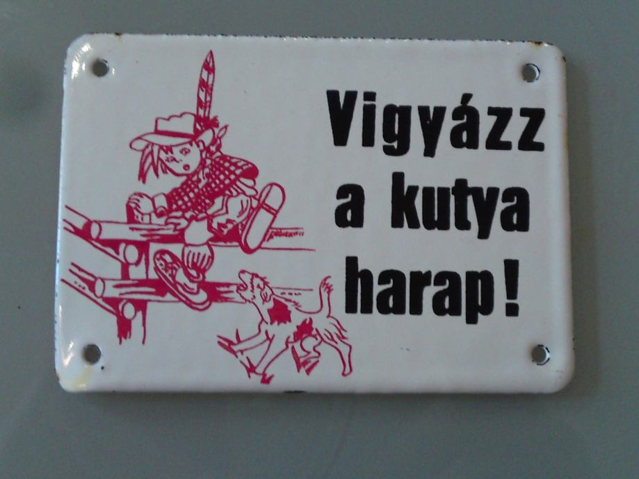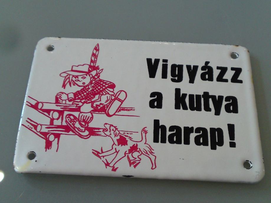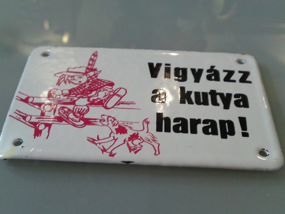 Stara emajlirana pločica , podrijetlo: mađarska; starost: 1950.g., Čuvaj se psa, dimenzije: 10,0 x 7,0 cm; za kolekcionare!