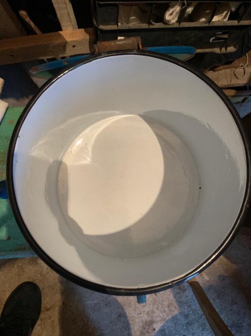 Prodajem staru emajliranu posudu za mast ili ulje od 10 ltr. U dobrom je stanju. Pogodna za etno kuću. Moguća zamjena. Ne šaljem pouzećem. Poštarina nije uključena.