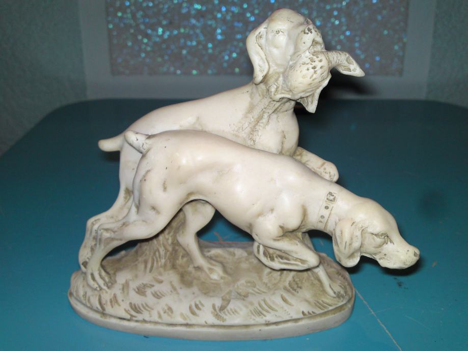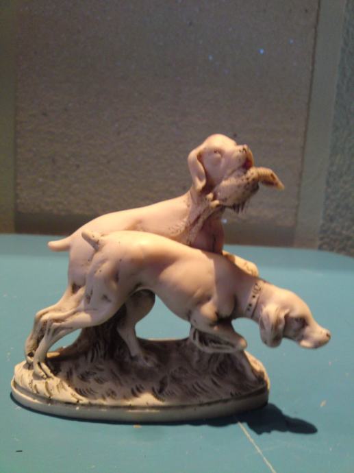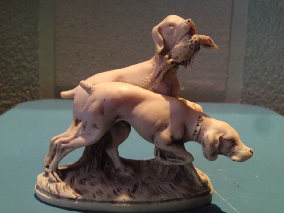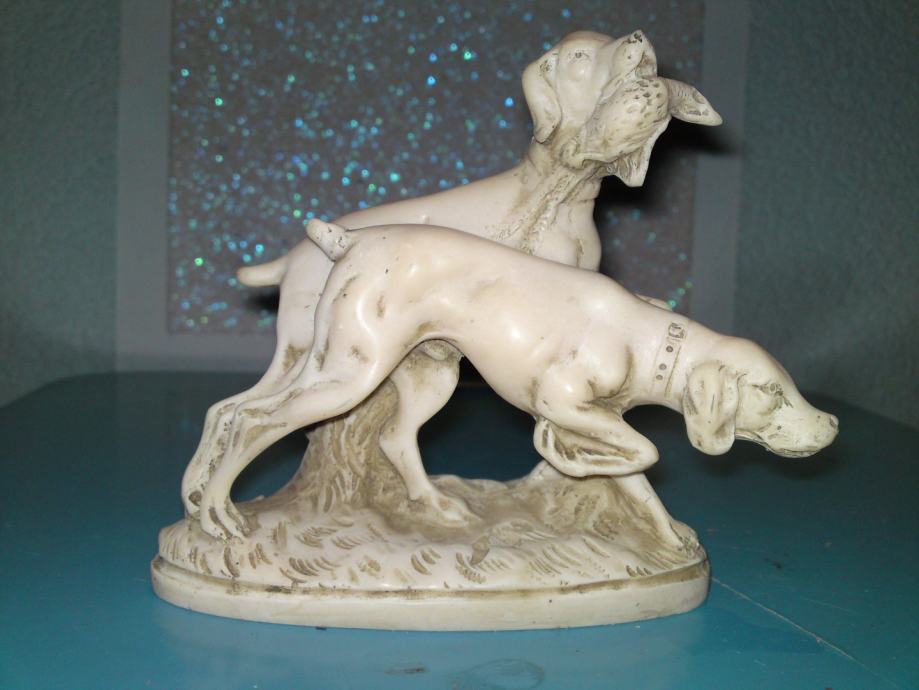 Stara figura - lovački psi. Materijal: alabaster. Stanje. odlično.