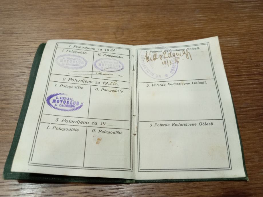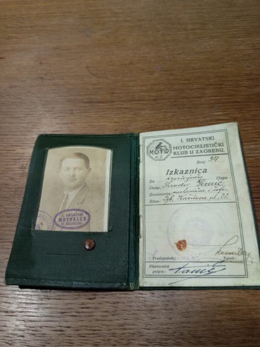 Antikna iskaznica 1. Hrvatskog moto - kluba, u Zagrebu iz 1925. godine, br. iskaznice 34. Kompletna i uredno očuvana.