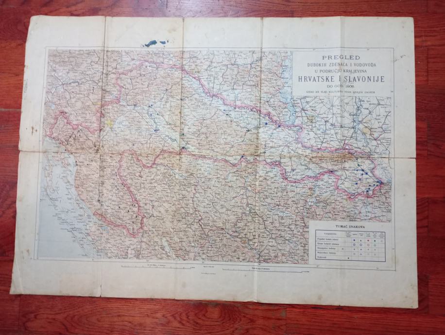 STARA KARTA - PREGLED DUBOKIH ZDENACA I VODOVODA U PODRUČJU KRALJEVINA HRVATSKE I SLAVONIJE DO GODINE 1906.