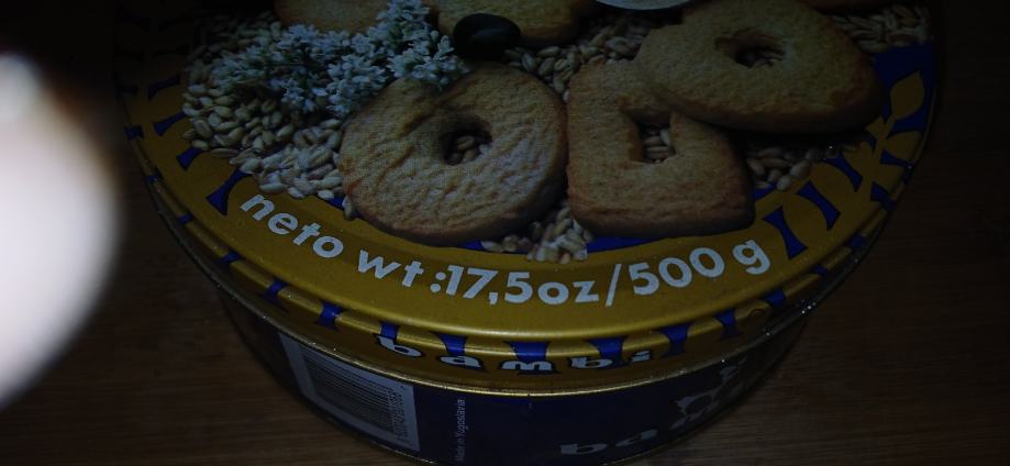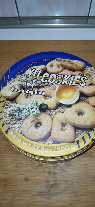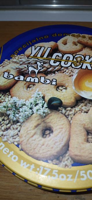 Bambi-yu cookies specijalno domace čajno pecivo.limena kutija 500 g u vrlo dobrom stanju.može slanje pošta ili tisak.0958241802