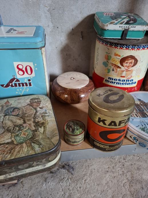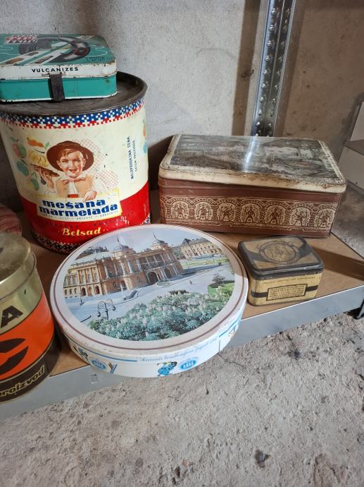 Stara limena ambalaža.Cijena je fixna i za svih 10 komada je kako i piše 50,00 eura.Pojedinačno cijena 15,00 e.Dostava prema dogovoru