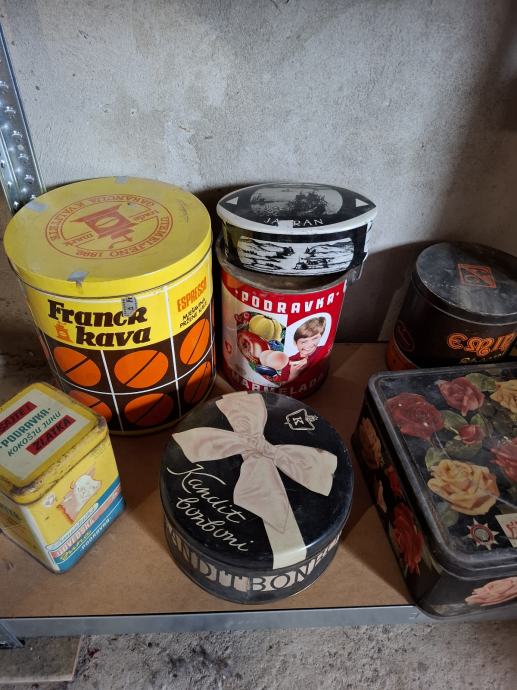 Stara limena ambalaža.Cijena je fixna i za svih 10 komada je kako i piše 50,00 eura.Pojedinačno cijena 15,00 e.Dostava prema dogovoru