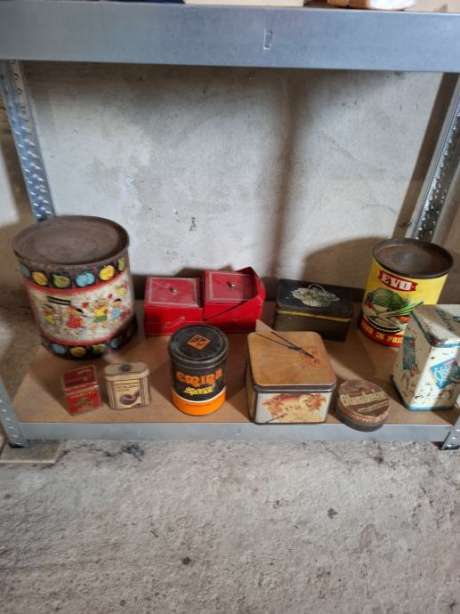 Stara limena ambalaža.Cijena je fixna i za svih 10 komada je kako i piše 50,00 eura.Pojedinačno cijena 15,00 e.Dostava prema dogovoru