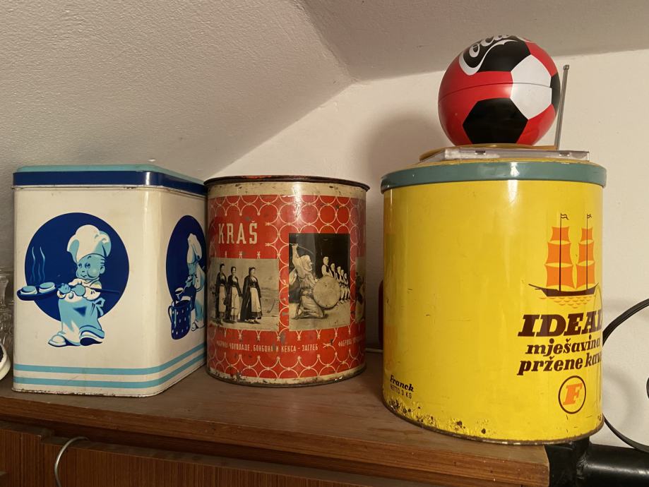 Stara limena Franck ideal kava, limena Kraš posuda, limena coca cola l