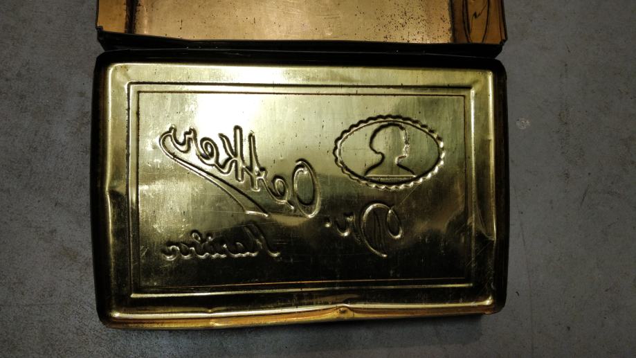 Prodajem starinsku limenu kutiju s natpisom i znakom Dr. Oetker Maribor, iz dvadesetih - tridesetih godina prošlog stoljeća, dimenzije cca 30 x 20 x 15 cm, u stanju kao na slici.