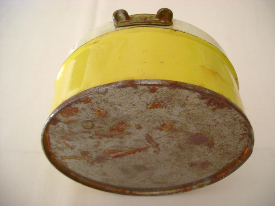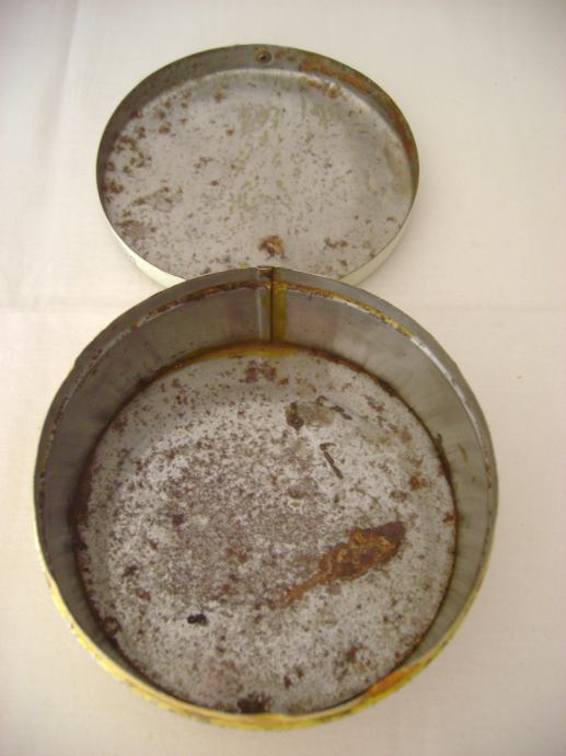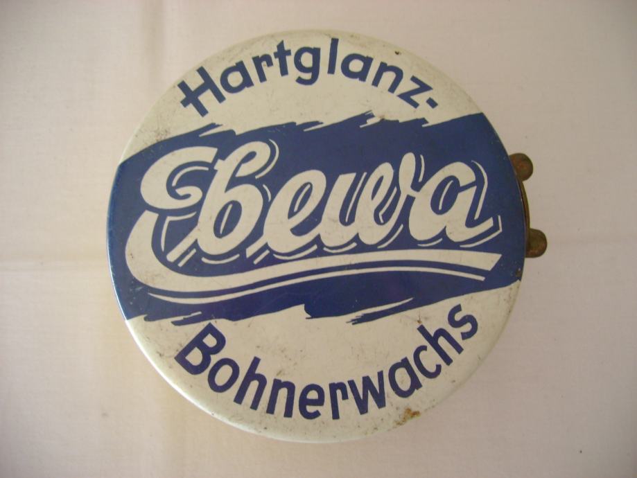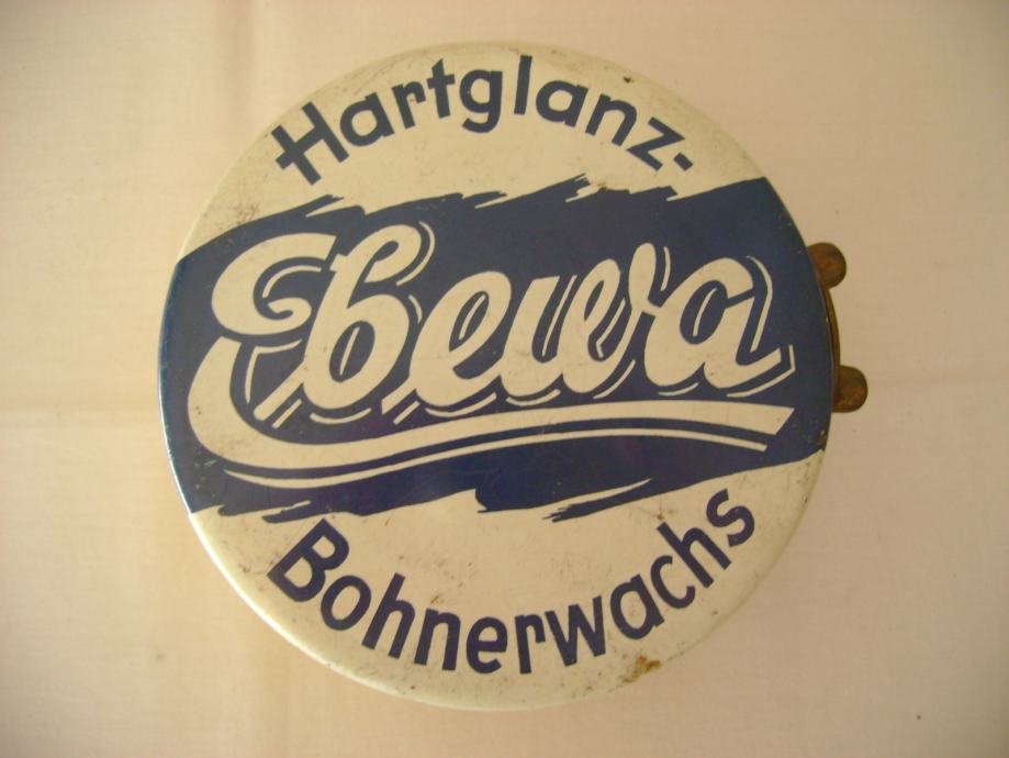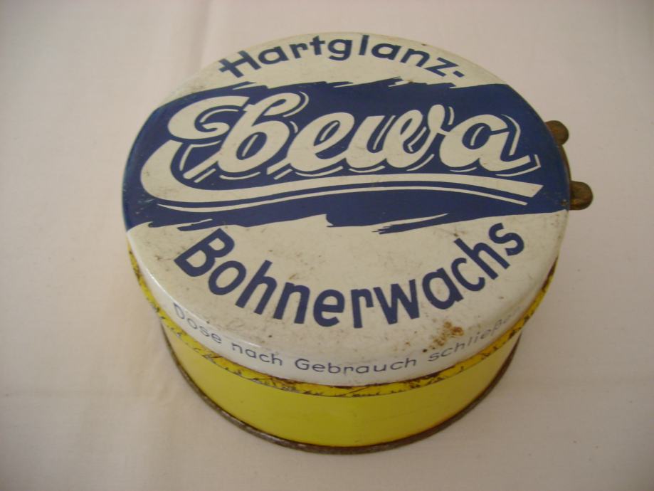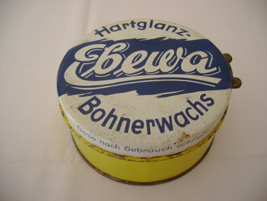 Stara limena kutija Ebewa Hartglanz Bohnerwachs - promjer 12 cm, visina 5,5 cm, stanje je vidljivo na slikama.