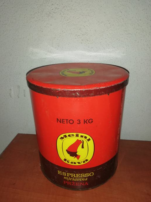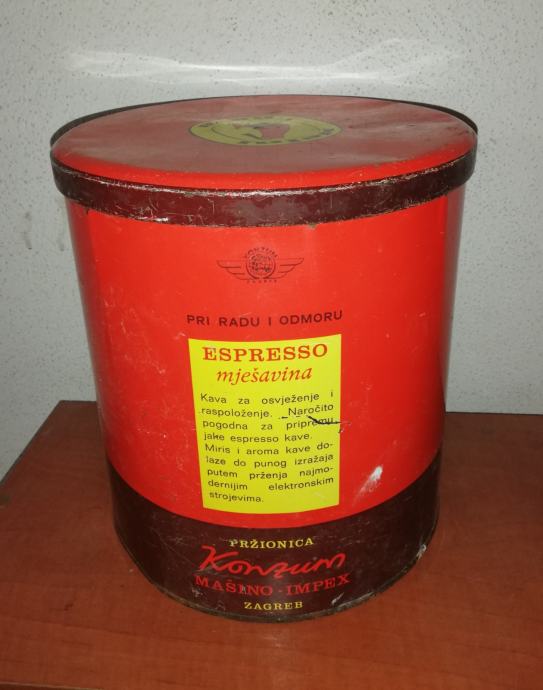 Stara limena kutija KONZUM Julius Meinl kava, visina 24,5 cm, promjer 22 cm, stanje:solidno, sačuvano.