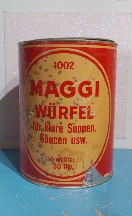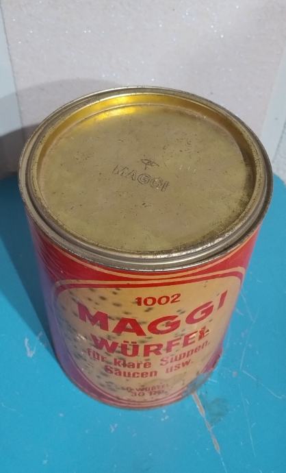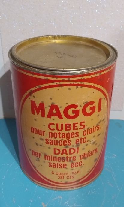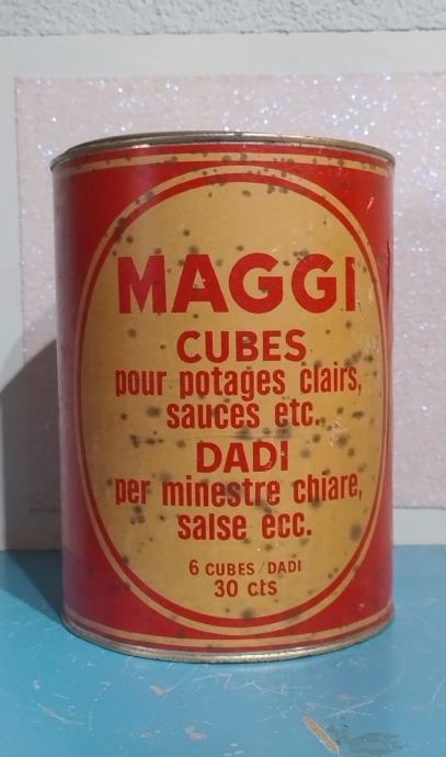 Stara limena kutija Maggi za goveđe kocke za juhu iz 1920.-tih godina.Maggi kocke za bistre juhe, umake itd.»