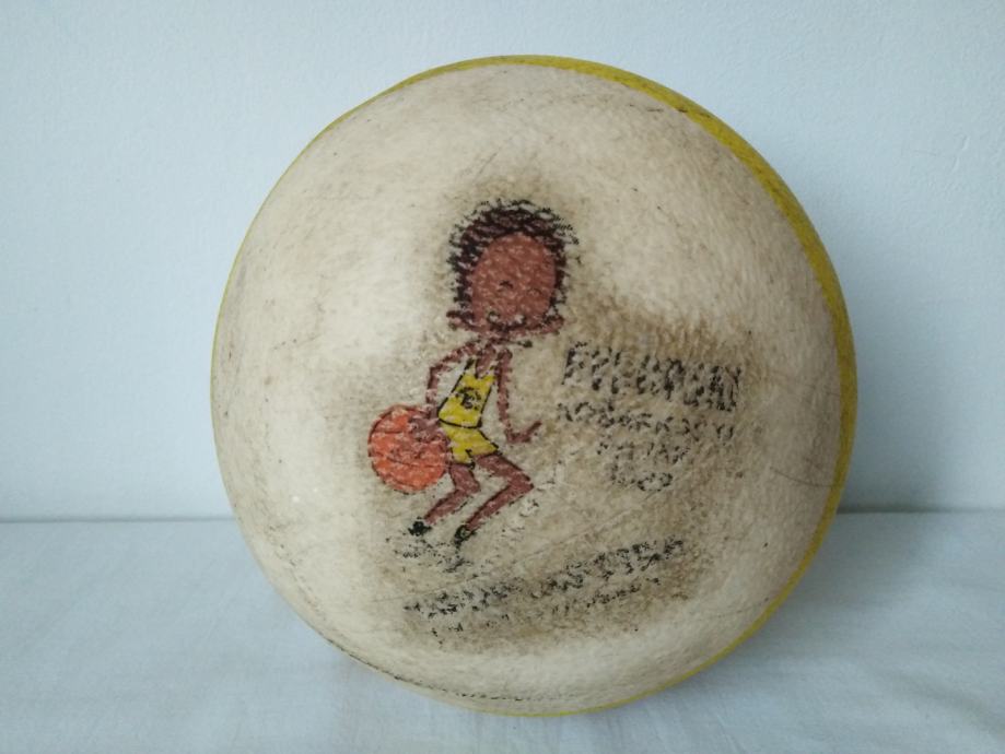 Stara lopta Jugoplastika sa slikom Žućka Europski košarkaški prvak