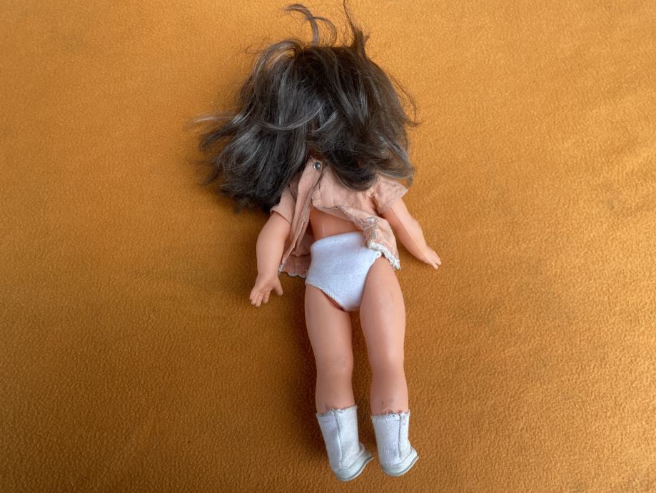 ruke, noge i glava su joj povezane gumicom koja je oslabila pa ispadaju