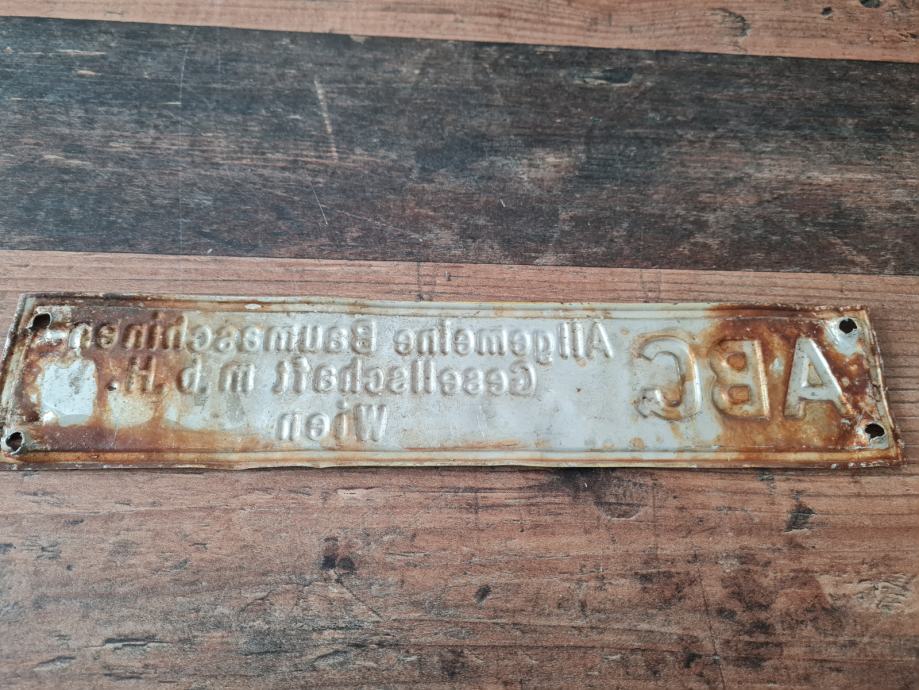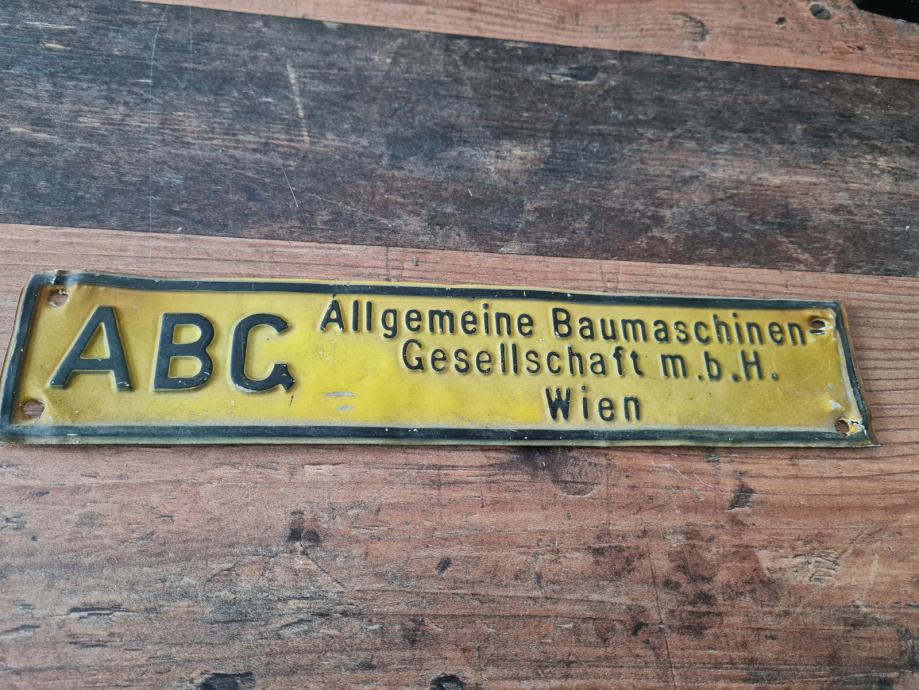 Stara metalna ploča - ABG Allgemeine Baumaschinen Gesellschaft Wien