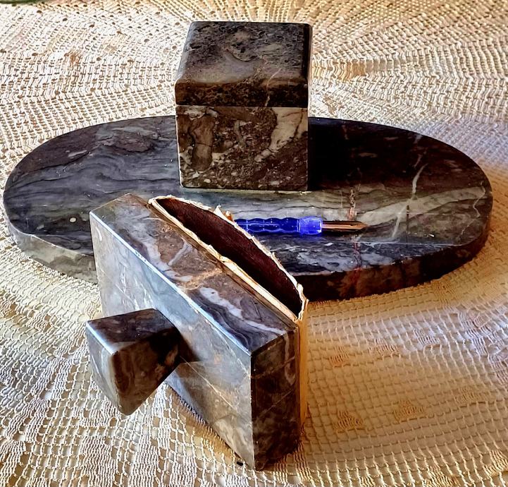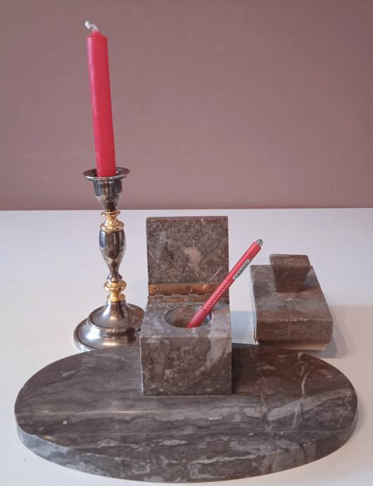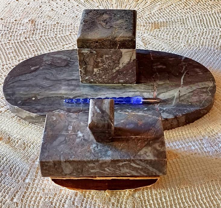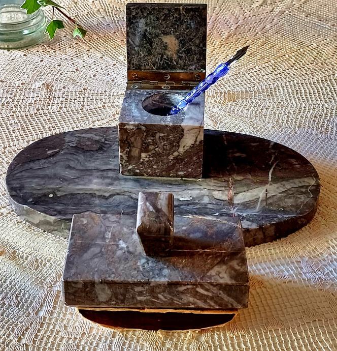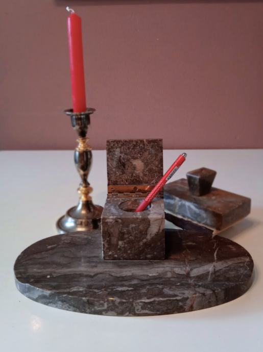 Stara mramorna tintarnica iz prve polovine prošlog soljeća. Dimenzije 30x17x10 cm.