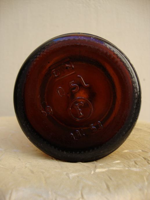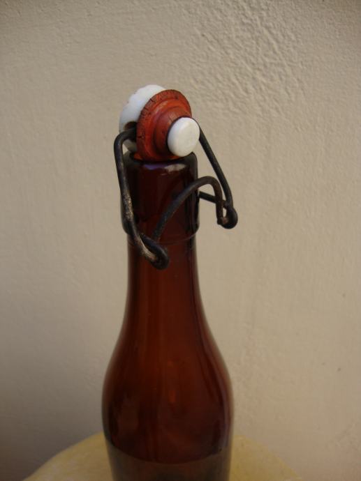 Prastara narančasta staklena boca sa starim porculanskim čepom očuvana -ispravno
