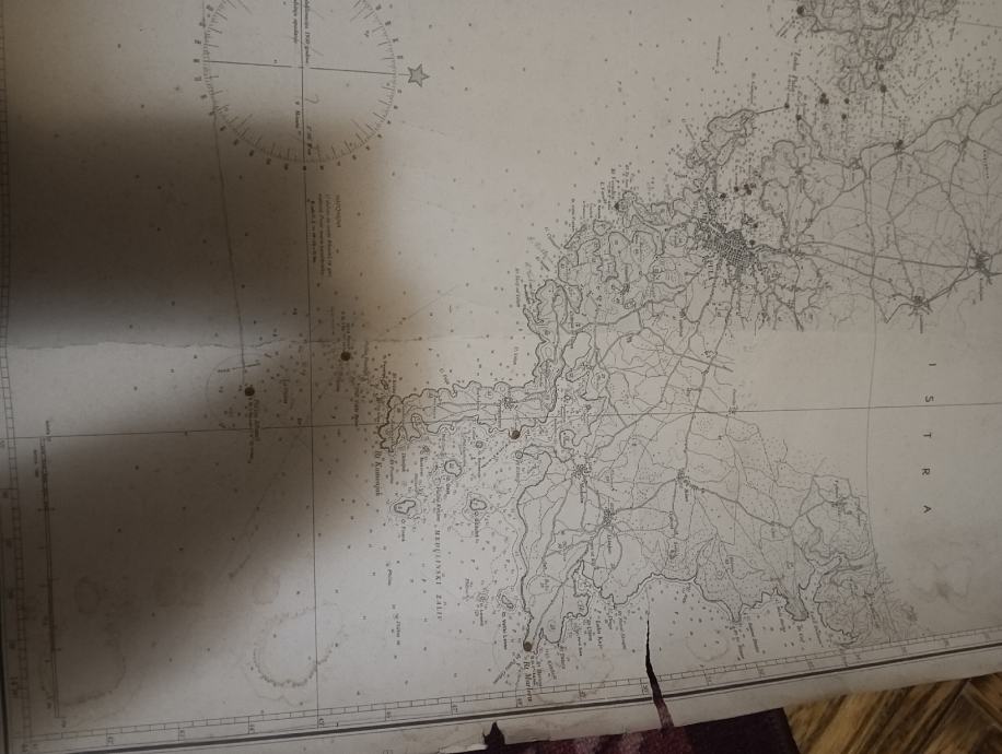 Prodajem staru nautičku kartu Pule,dimenzije 80/70cm. Karta ima manje oštečenje s desne strane,vidljivo na slici. Plačanje na račun ili gotovina.