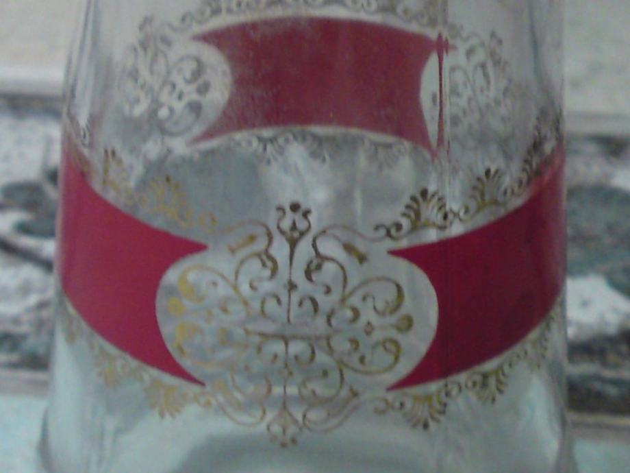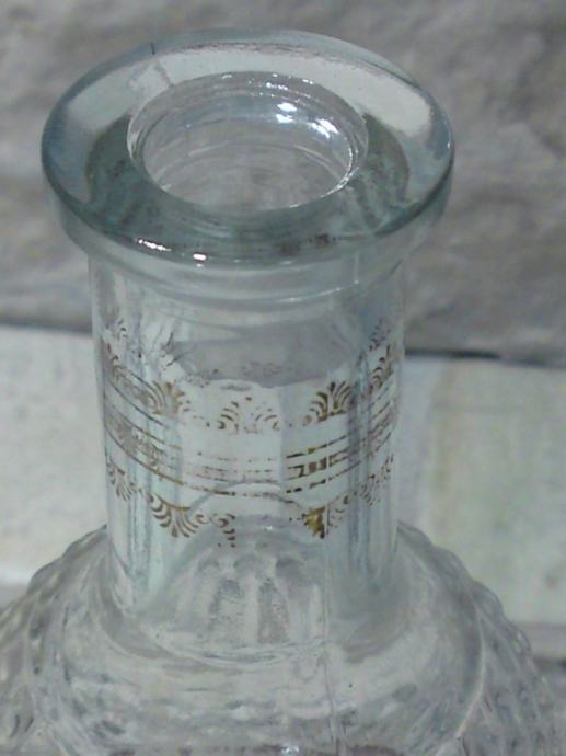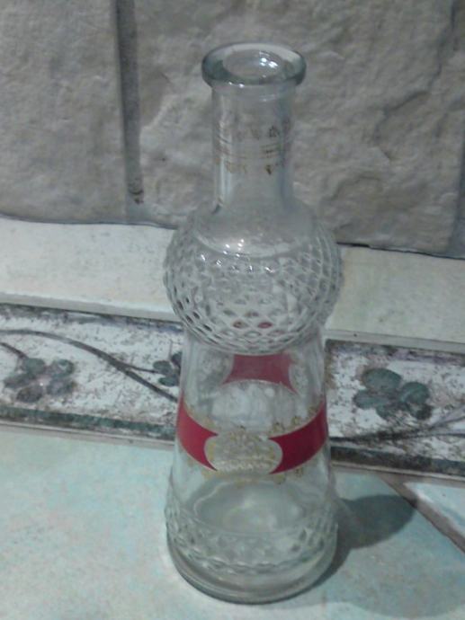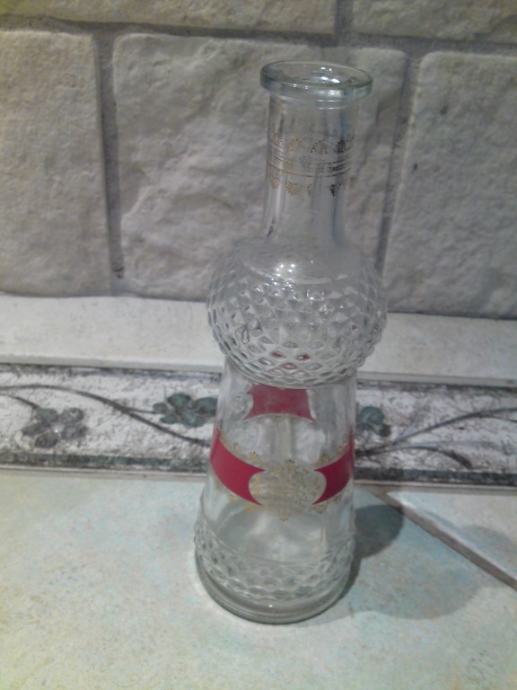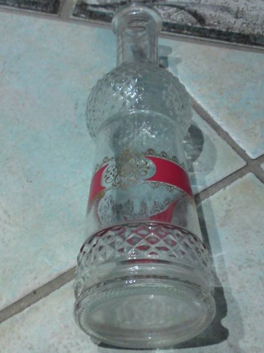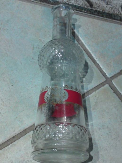 Stara boca od stakla, neobičnog izgleda sa reljefnim i bojanim dekoracijama, neoštećena.