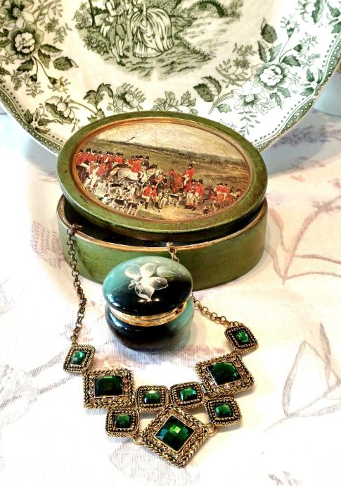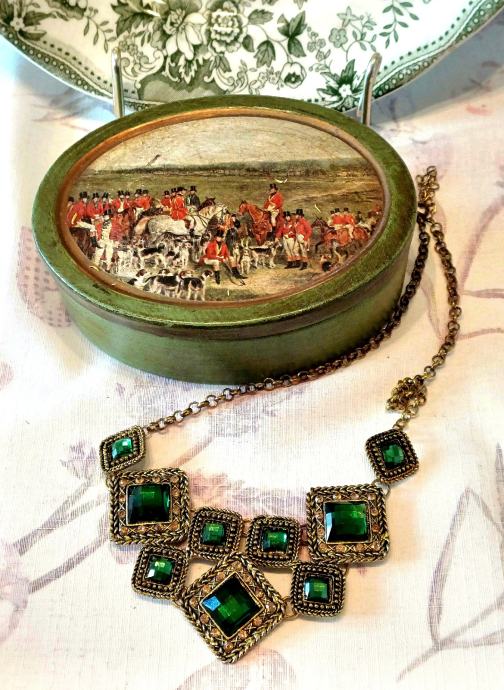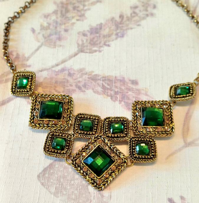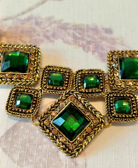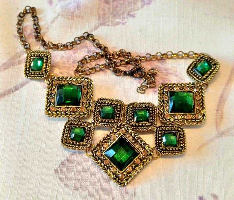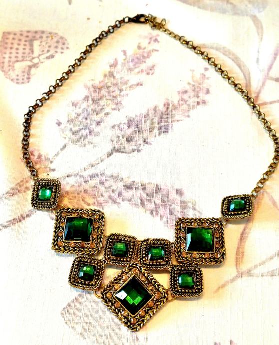Lijepa stara, ali dobro očuvana ogrlica, neobičnim brušeni staklenim elementima. Ukupna dužina 50 cm.