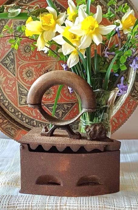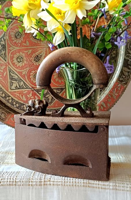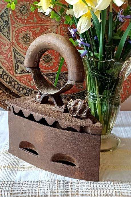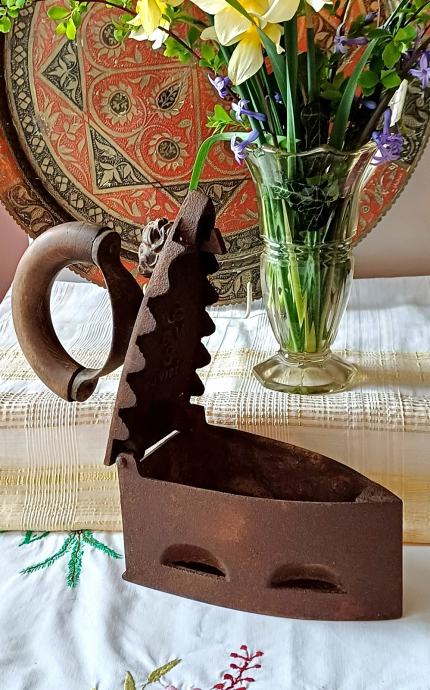 Lijepa stara pegla na žar u izvornom stanju. Namjerno nisam željela upropastiti ju bojanjem. Stanje izvrsno.
