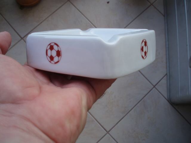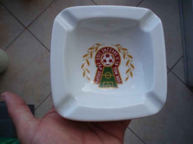pepeljara od porculana izrađena u INKERU iz Zaprešića, sasvim očuvana i nikada korištena, ispisan logo " Udr.nog.kl ll Savezne lige zap.grupa.