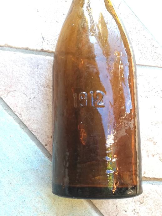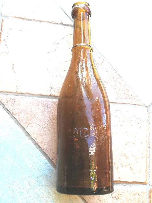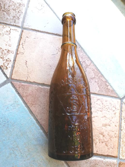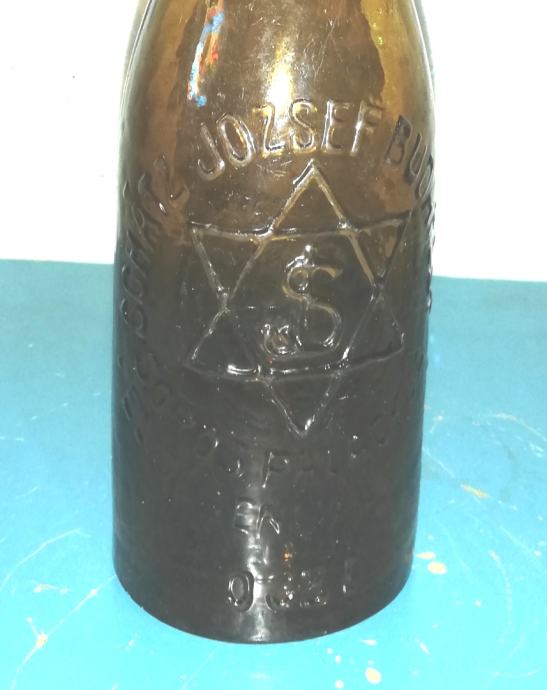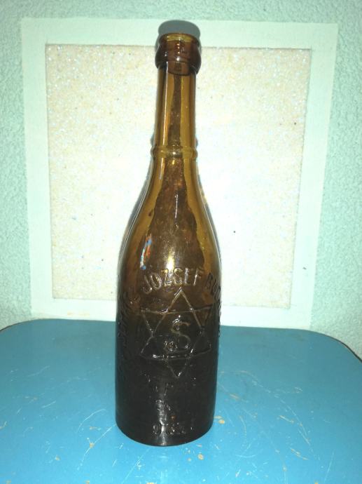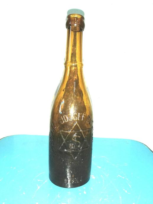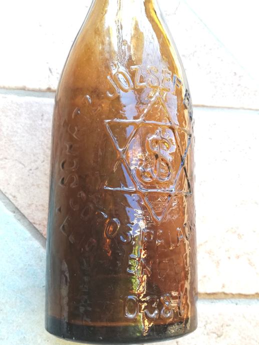 Stara pivska boca iz 1912.g,, 0,38 ltr, sa reljefnim natpisom Schatz Jozsef Budapest i židovskom zvijezdom i inicijalima JS, te godinom 1912.g.Stanje boce:izvrsno, kao nova, iz privatne kolekcije . Boja: žućkasto narančasta.
