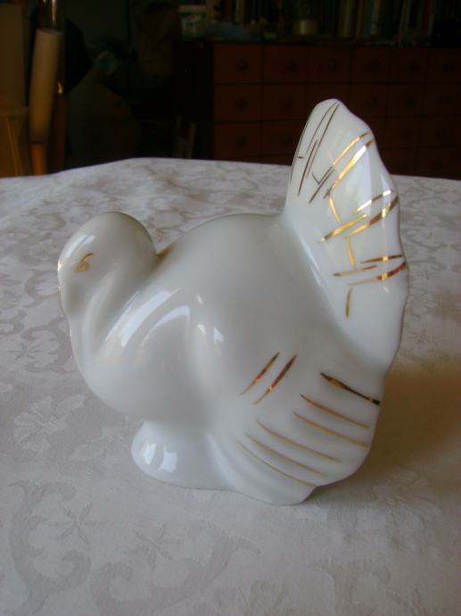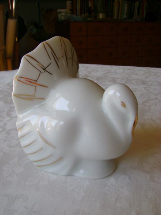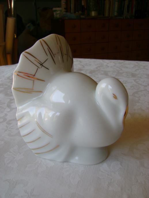 Stara porculanska figurica - Purica (Puran) - sa pozlatom, 9 x 6,5 x 8 cm, odlično očuvana - stanje je vidljivo na slikama.