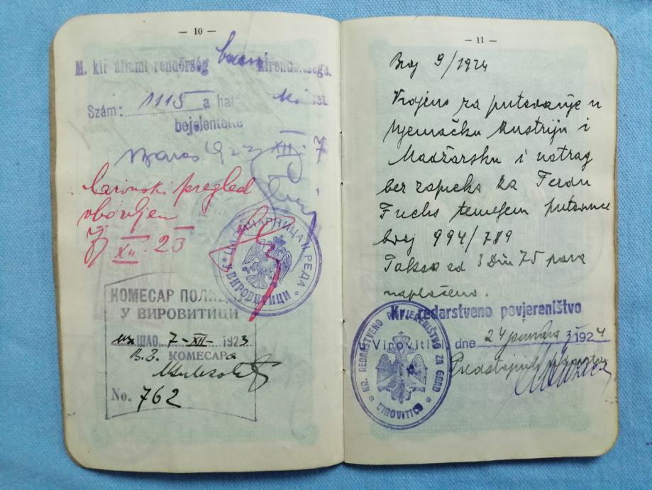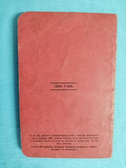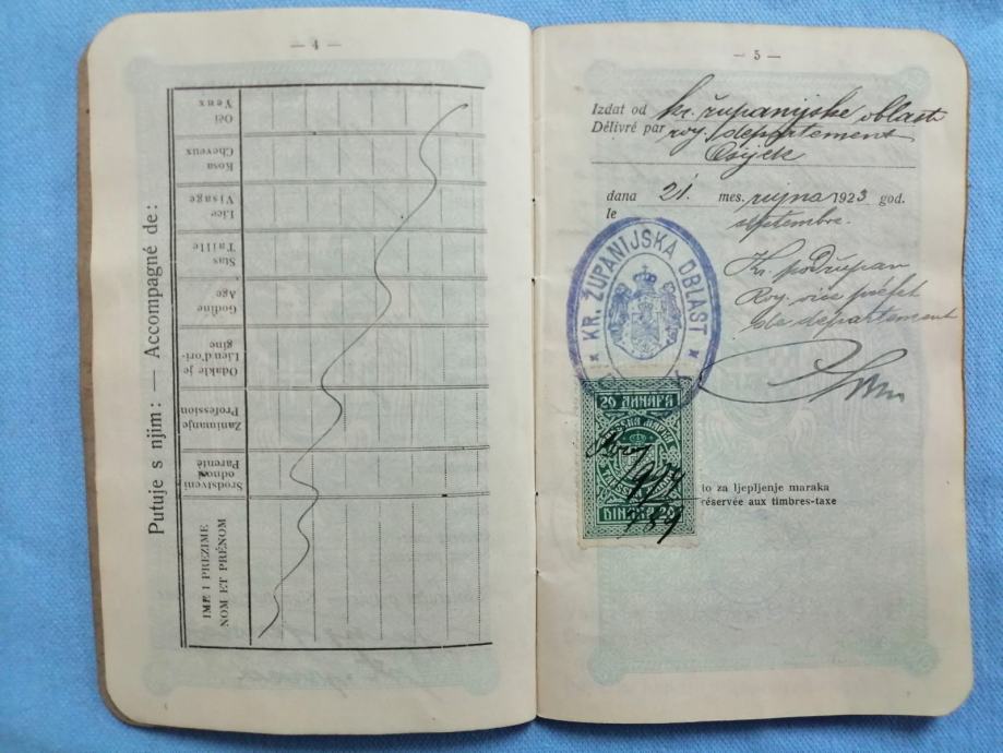 Stara putovnica Kraljevina Jugoslavija 1923. godina