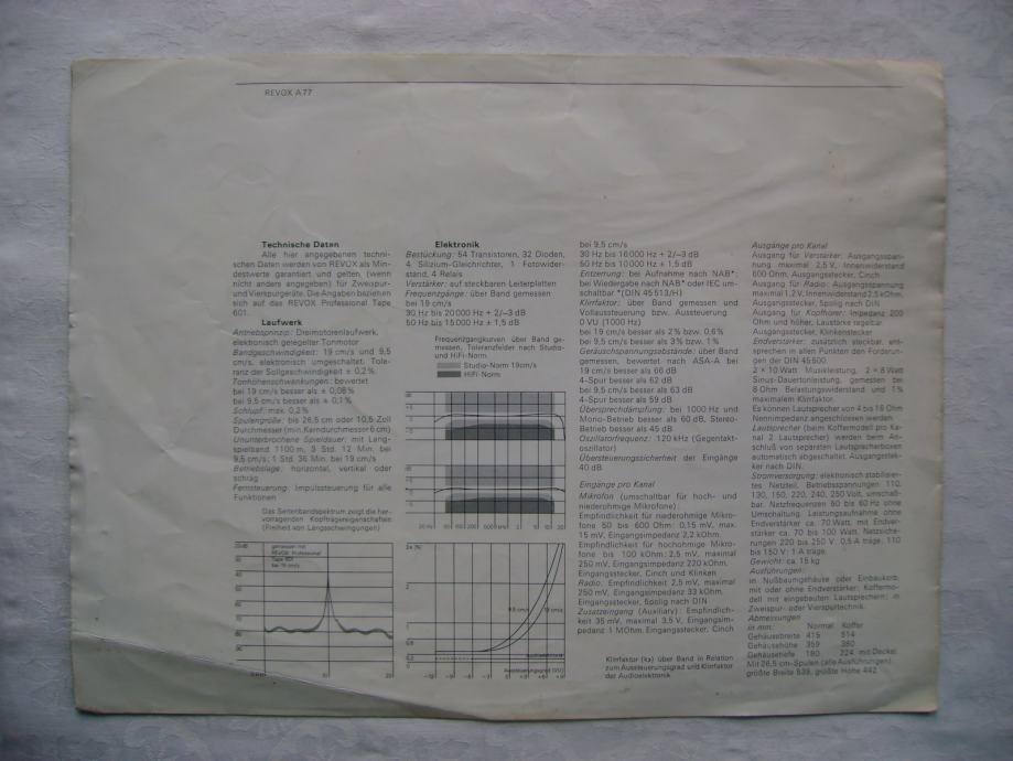 Stara reklama / katalog - Studer Revox A 77, 28 x 21 cm, dva lista, stanje je vidljivo na slikama.