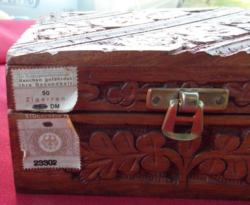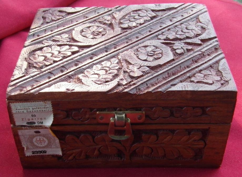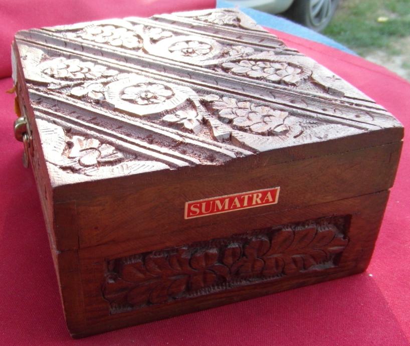 Kutija je napravljena na Sumatri i dimenzija je 15 x 12,5 x 7 cm.