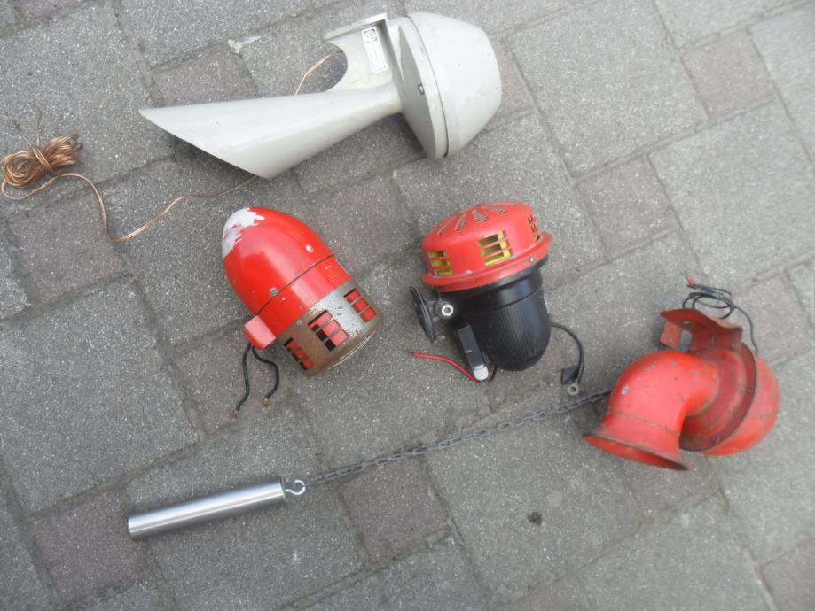 Sve su ispravne,sve su na 220V,osim ove na drugoj slici koja je ispravna kao i sve ostale,ima poseban zvuk(rika bika),radi na 12V,pa pretpostavljam da je bila na nekom vozilu ili negdje drugdje,,pali se potezom na jednu ručku(cijena 150€ za tu jednu)cijena za cijeli lot na slikama je 600€,imam još nekoliko sirena koje potražite na mojim ostalim oglasima,a neke slik imate i na ovom oglasu