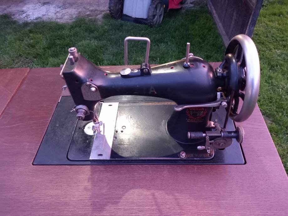 Stara šivaća mašina na gusanom postolju marke VESTA