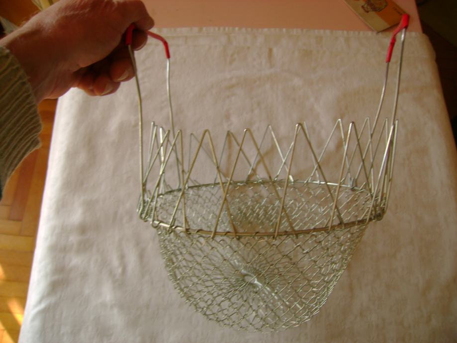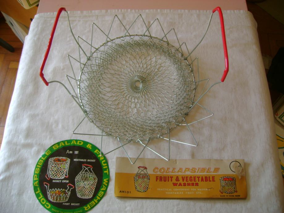 Stara sklopiva mrežica za pranje voća i povrća, promjer sklopljene 23 cm, nova, nekorištena - stanje je vidljivo na slikama.