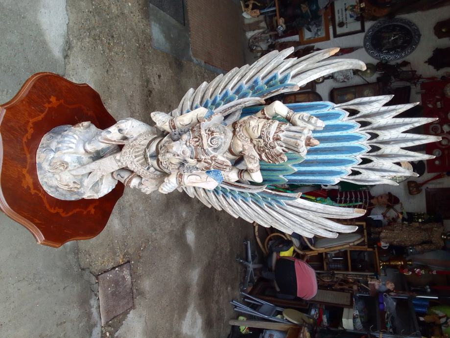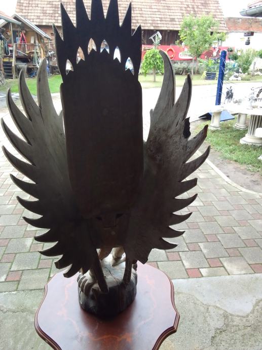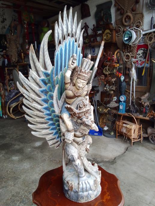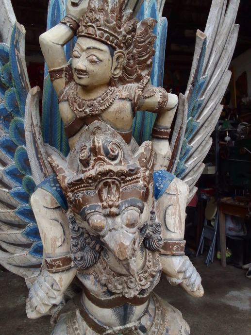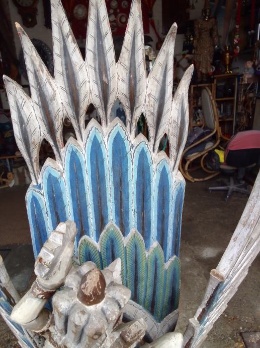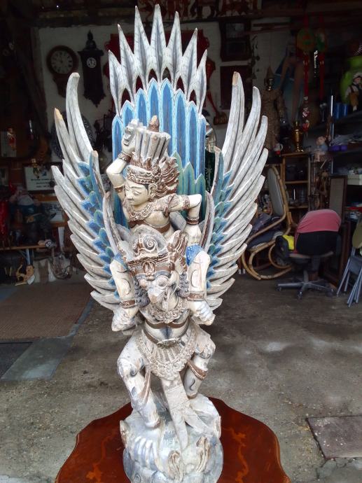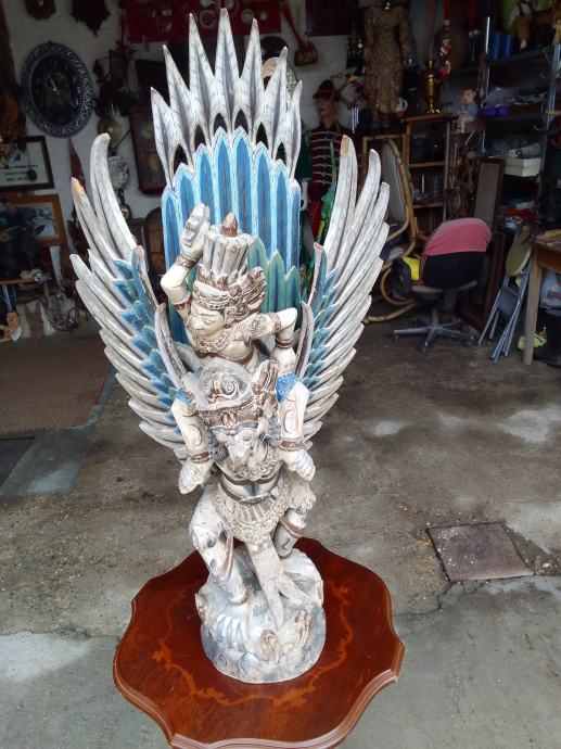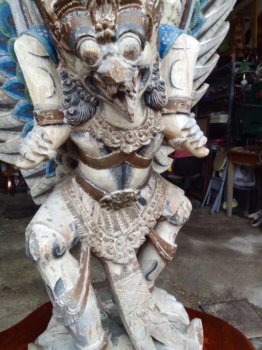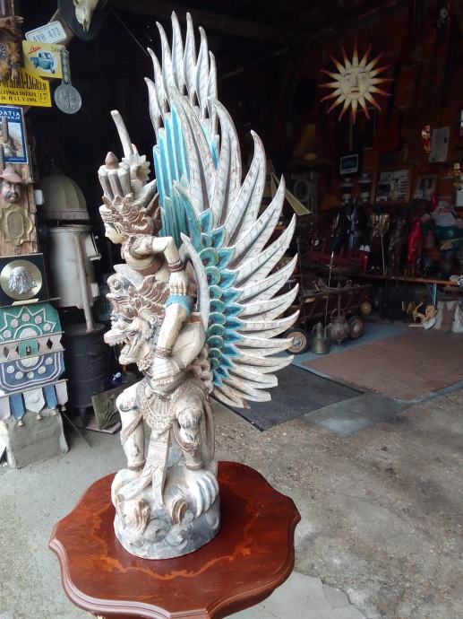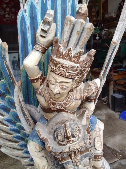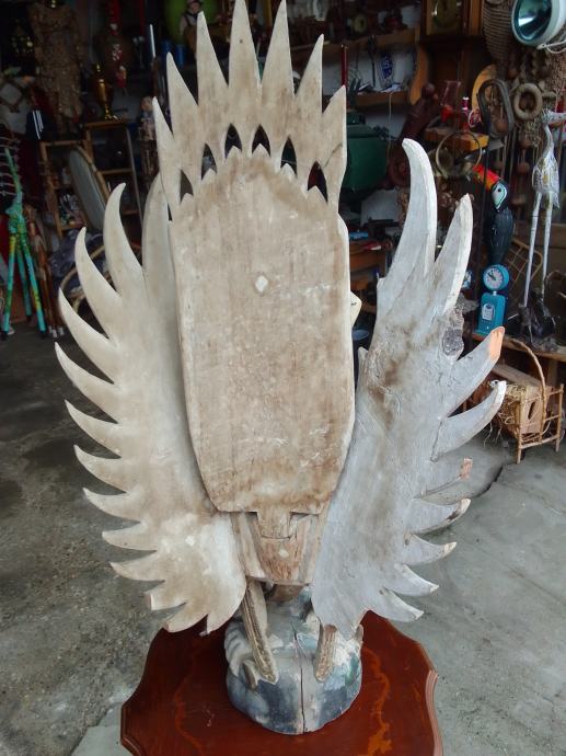 Stara skulptura sa Balija u Indoneziji,izrađena od punog drveta,krila se mogu skinuti,na samoj skulpturi vidi se utjecaj hinduističke i budističke kulture,prekrasan ručni rad koji će uljepšati vaš prostor ako volite nešto ovakvo,dimenzije su 100x 50 x 30cm(v x š x dubina),pogledajte moje ostale oglase starina i antikviteta i za sve možemo mijenjati,zato nazovite što vas interesira.