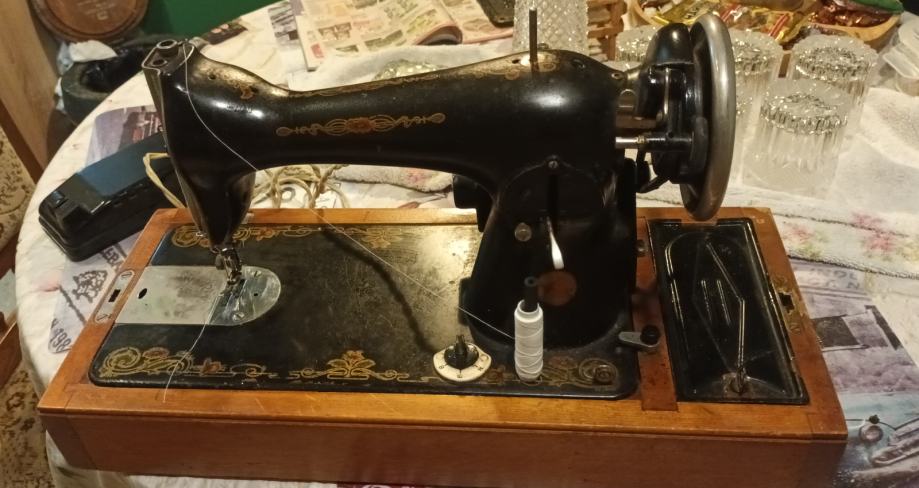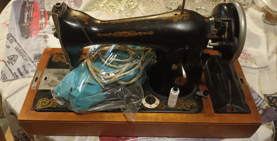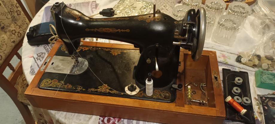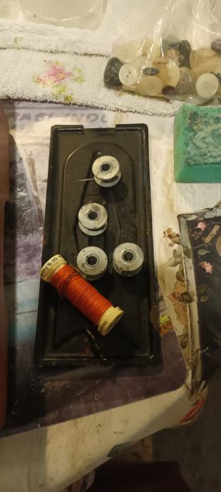 stroj je u odlicnom stanju nema ostecenja dolazi sa rezervnim donjim spulama i dodacima sa slika vrecicom starih gumbova