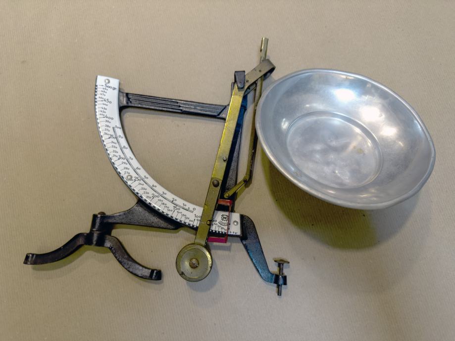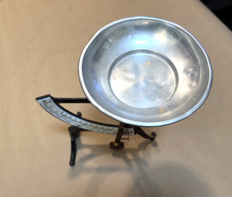 Stara unikatna poštanska vaga od lijevanog željeza i mesinga M Concave Švedska. Proizvedena sredinom stoljeća 1920 do 1949