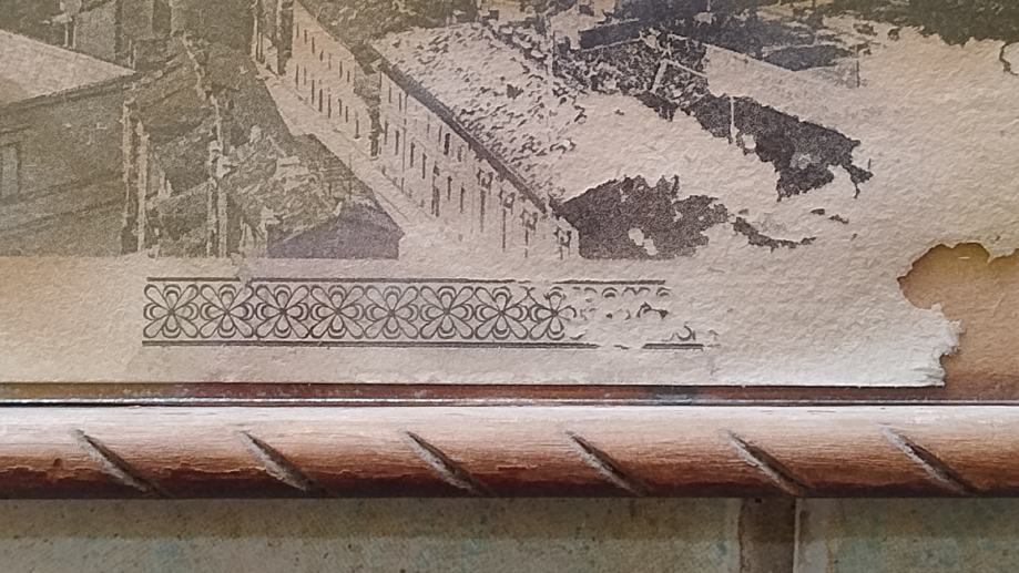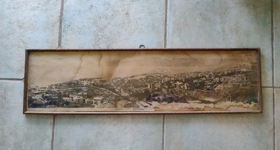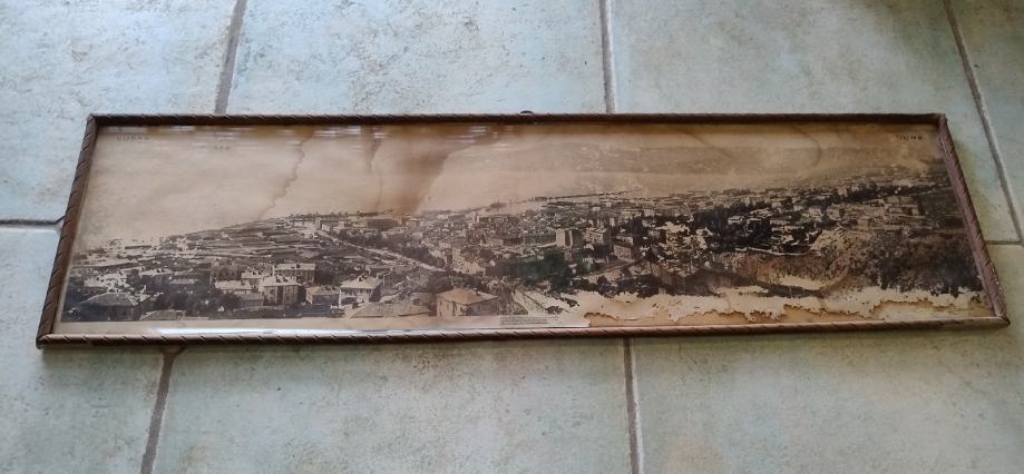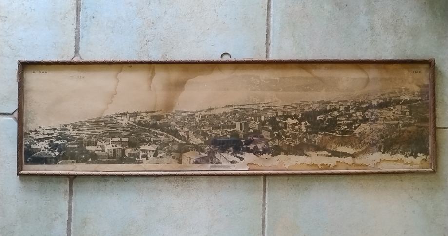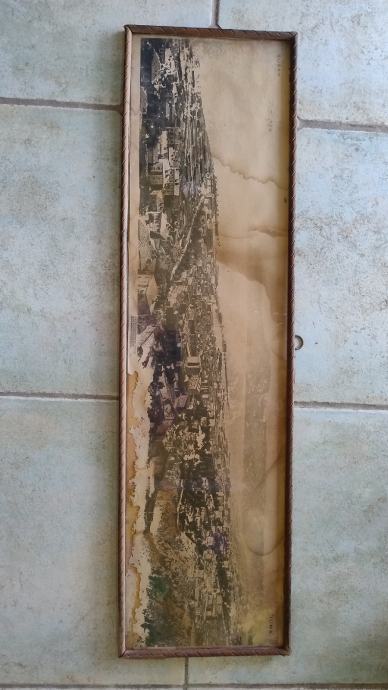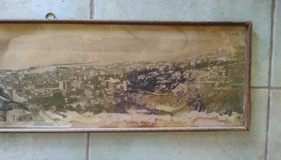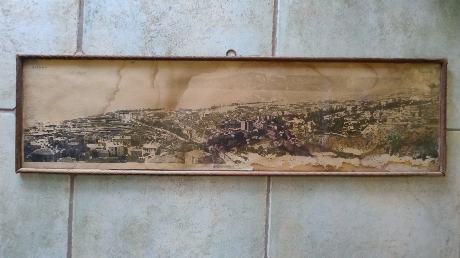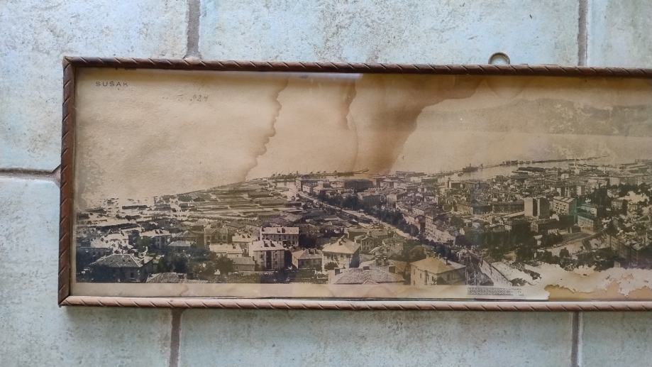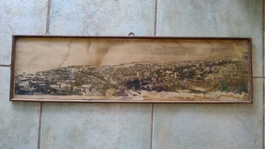 Stara uramljena fotografija panorama Sušak i Rijeka, dimenzije 70,2 x 19,6 cm, debljina okvira 0,7 cm, dubina 1,0 cm.