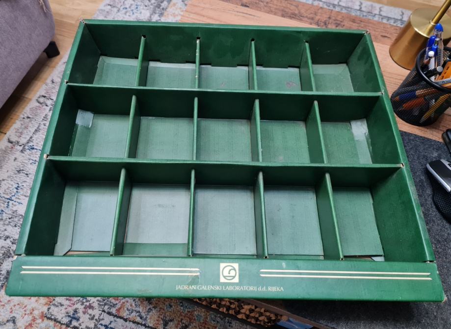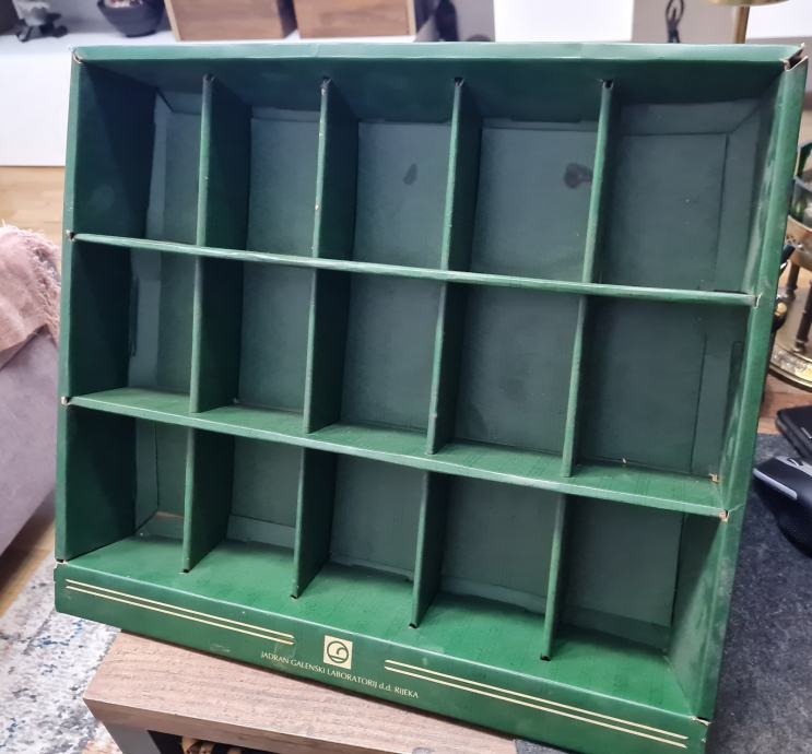 Galenski laboratorij Rijeka, stabilna i ušćuvana, samostojeća, ali i mogućnost vješanja na zid, dodatak kruna na vrh polica, sve vidljivo na fotografijama, dekorativno i funkcionalno....