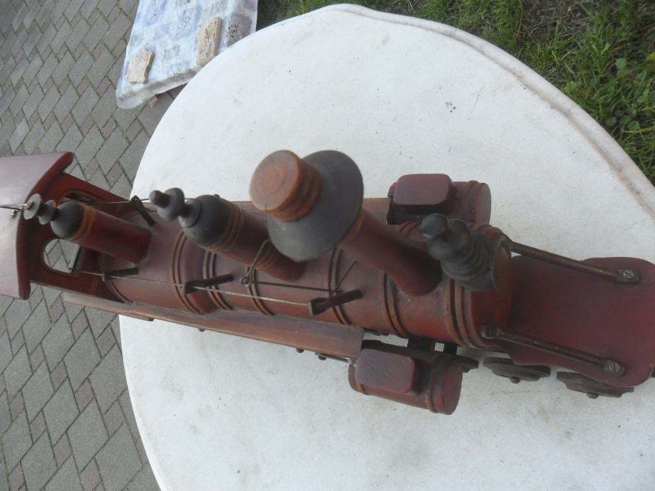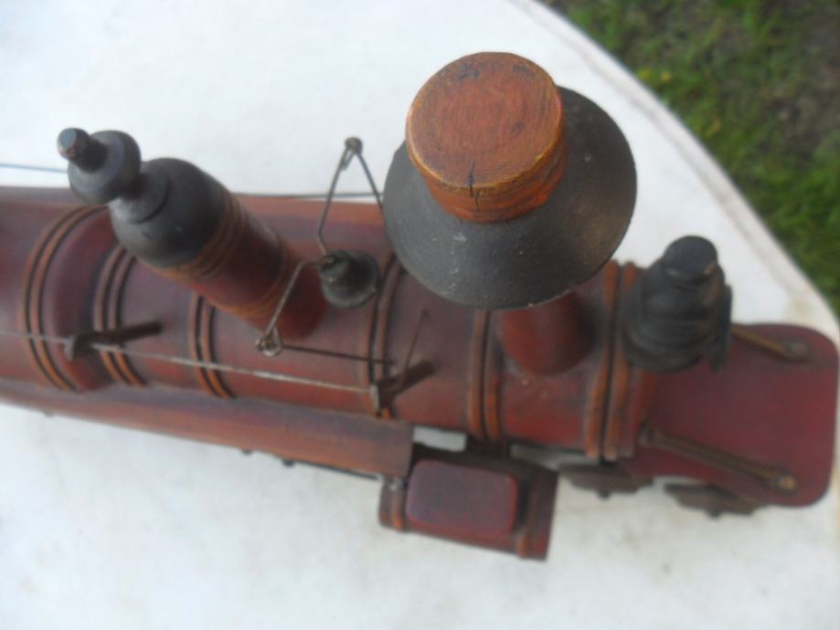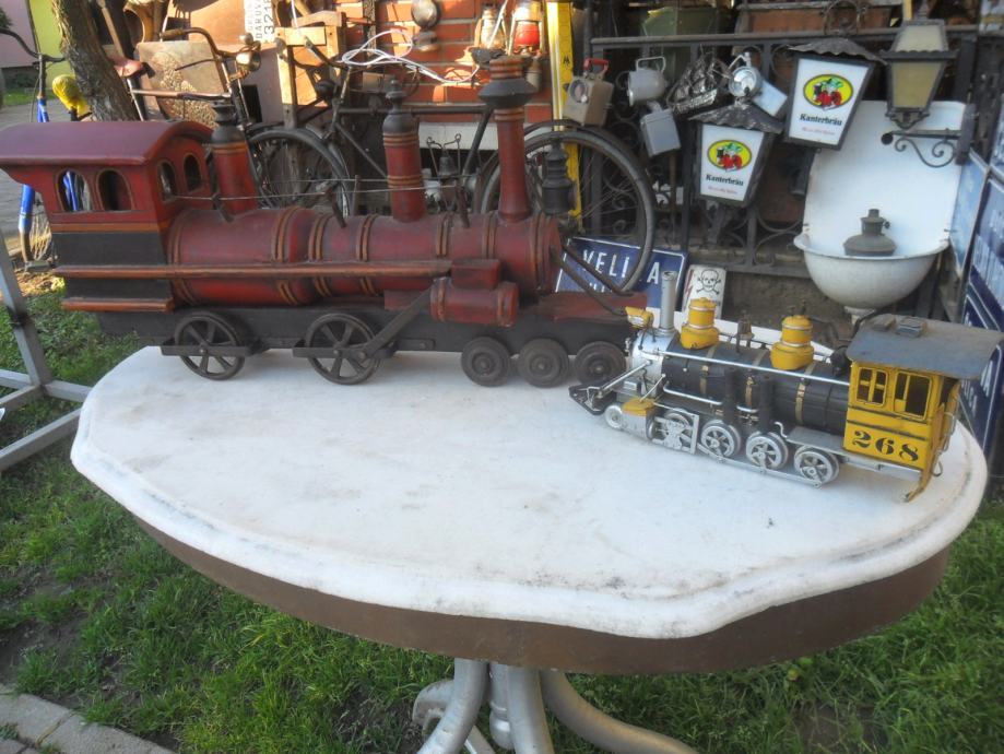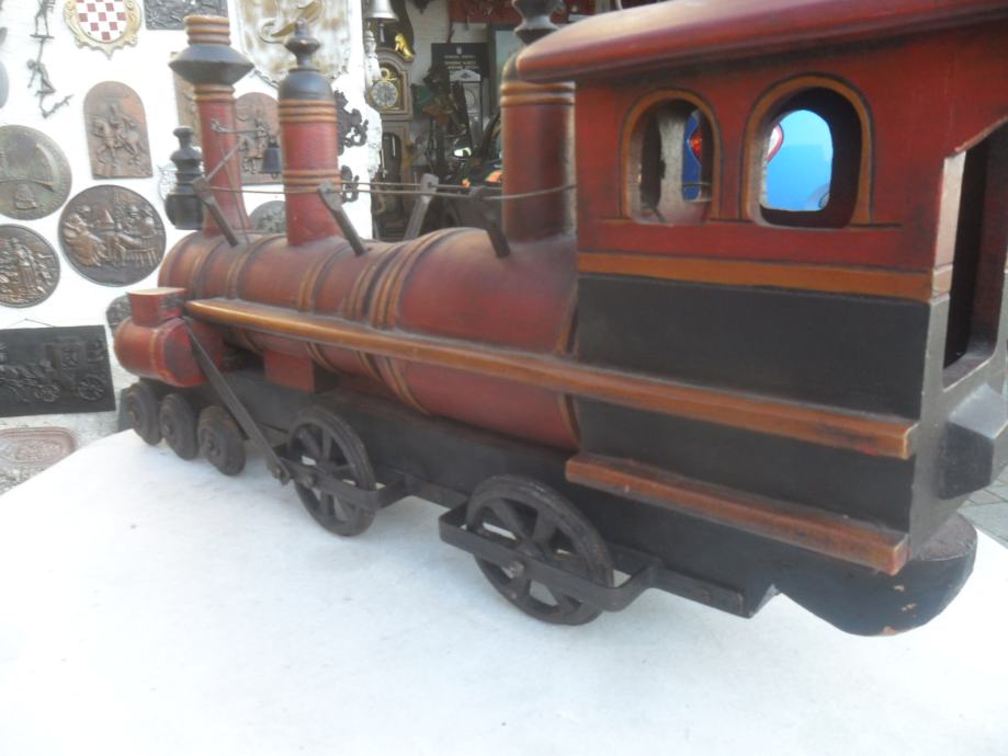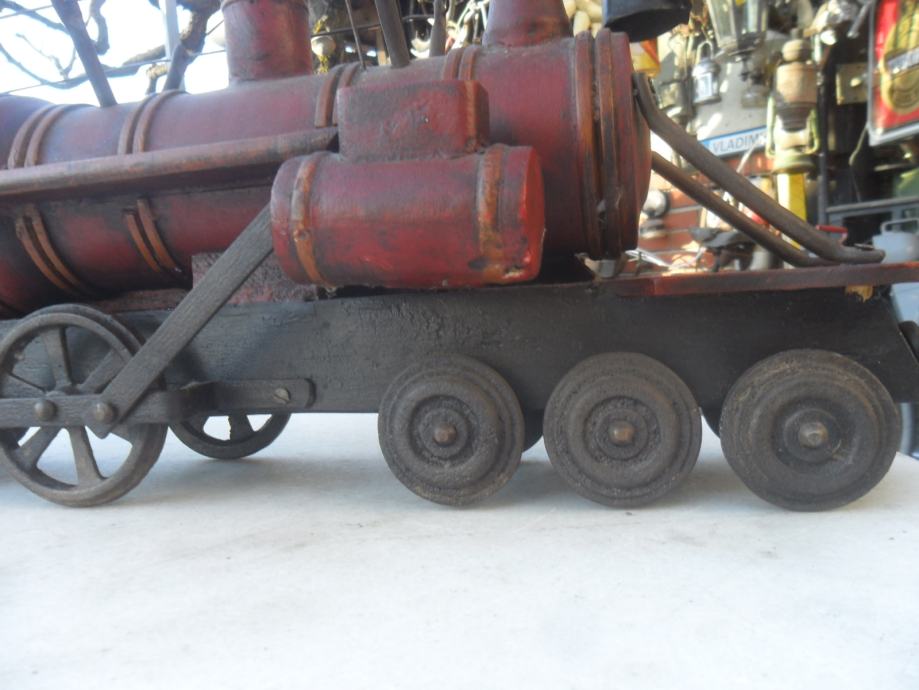 prekrasna i jako dekorativna maketa parne lokomotive,izrađena u kombinaciji drveta i metala(metalni kotaći koji se okreču)dimenzije su 63 x 33 x 17cm(d x š x debljina)imam 2 razlićita kolekcionarska primjerka..cijena se odnosi na ovu veliku crvenu,žuta na upit....pogledajte moje ostale oglase starina i antikviteta i moguče su svakojake zamjene za starine ako mi odgovaraju za moju zbirku