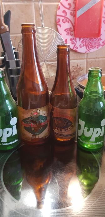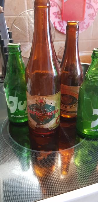 Četiri stare boce,karlovačko iz 1960ih godina.Jupi made in yugoslavia komplet 10e.karlovac