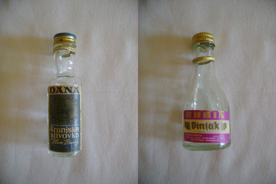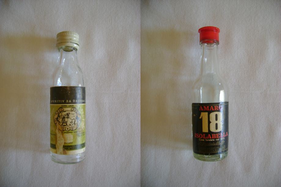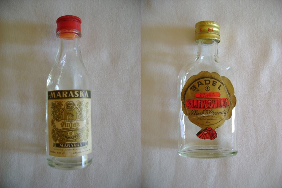 Komplet starih bočica od žestice - 12 komada, prazne, stanje je vidljivo na slikama.