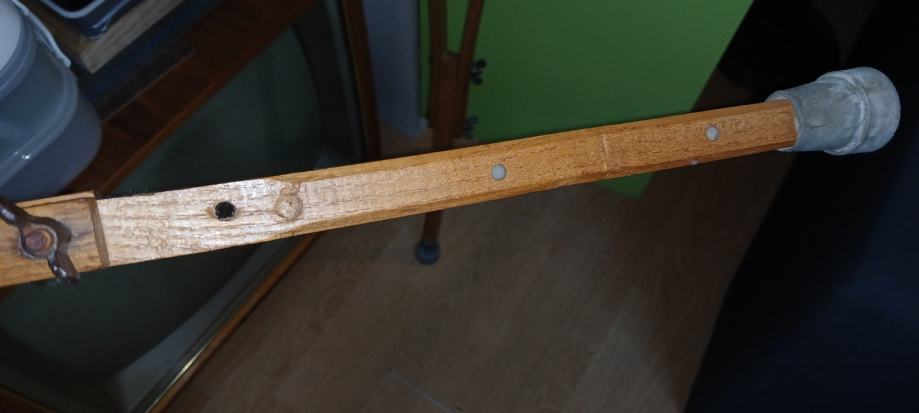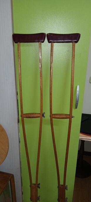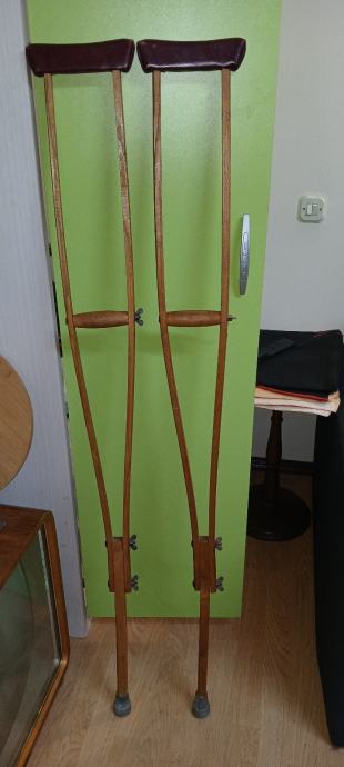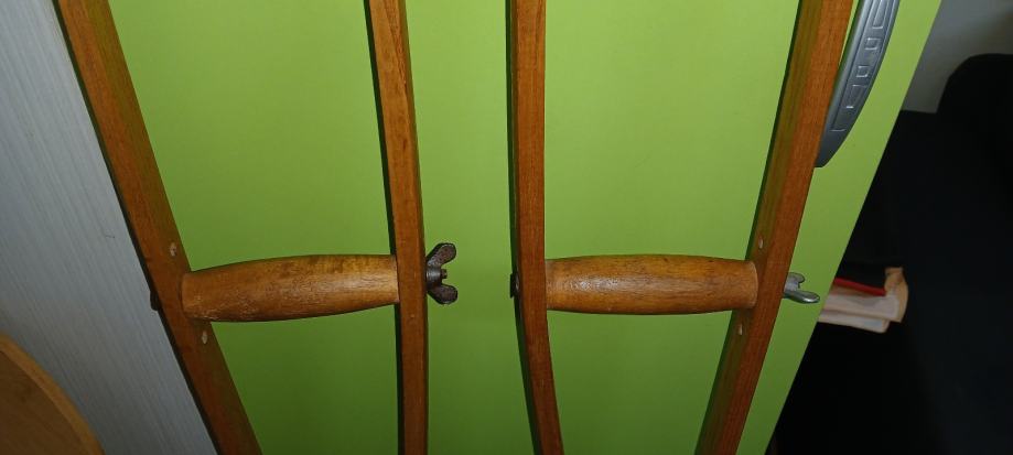 Podpazušne drvene štake rucni rad nekog starog majstora.hrastove a opet lagane i čvrste.mogučnost štelanja visine.šaljem poštom