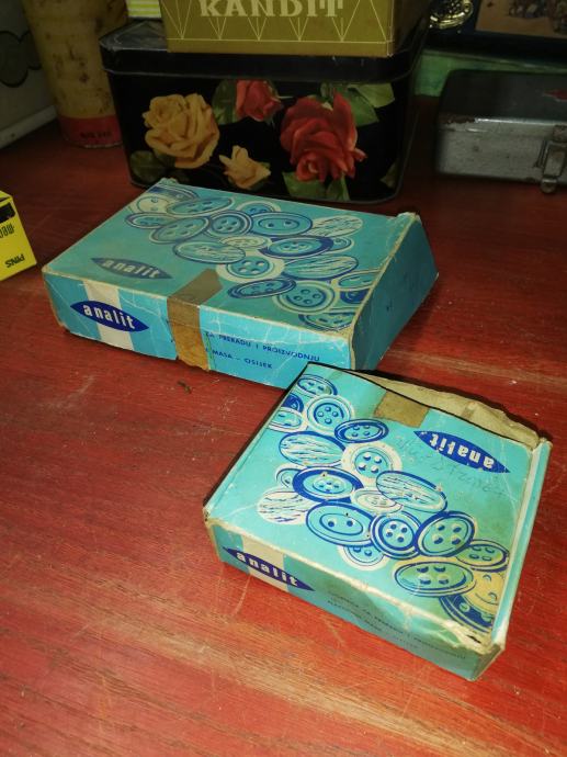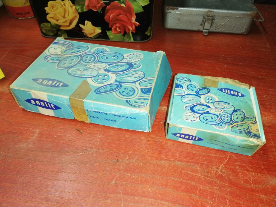 Dvije stare kartonske kutije za dugmad, Analit, Osijek.