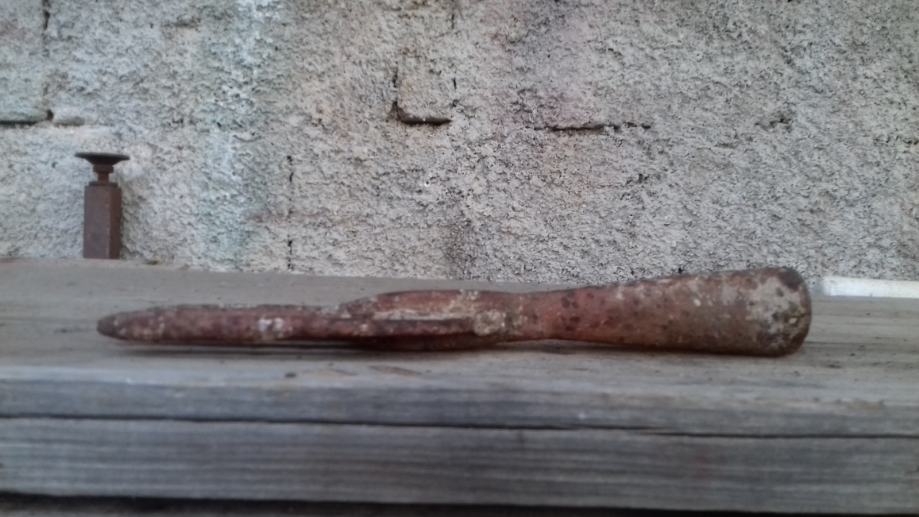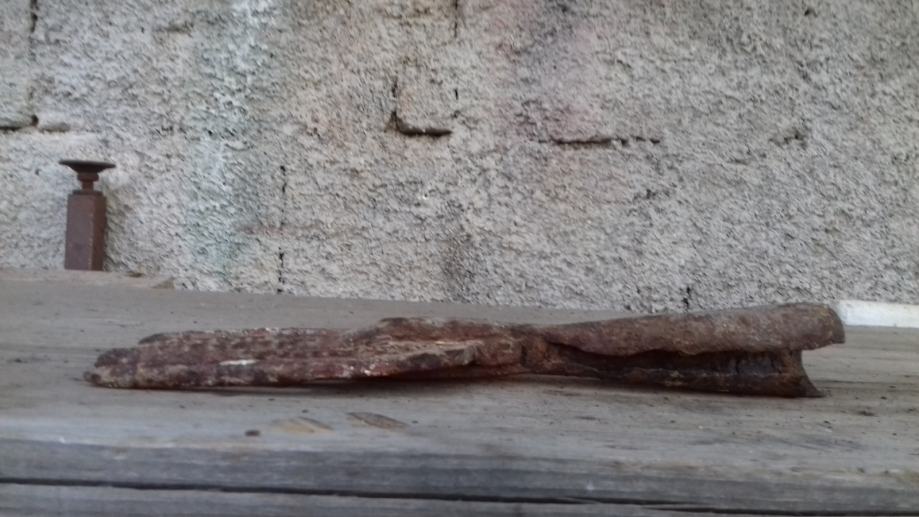 Prodaju se stare kovane osti dužine cca 31,5 cm, širine između najvišeg gornjeg dijela "bodlji" cca 8,7 cm i širine ulaza za oblicu (lunču, lanču) sa vanjskim dijelom željeza cca 4,5 cm. Osti su oštećene na način da uzdužni dio cijevi u koji ulazi oblica djelomice nedostaje što je vidljivo na fotografiji. Cijena je 60 eura. Mogućnost osobnog preuzimanja u Zadru. Kontakt broj mobitela: 091 131 10 36.